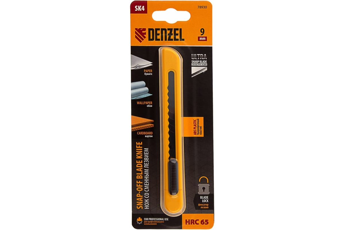 Нож 9 мм сменное лезвие SK4 корпус из ABS пластика нажимной фиксатор Denzel