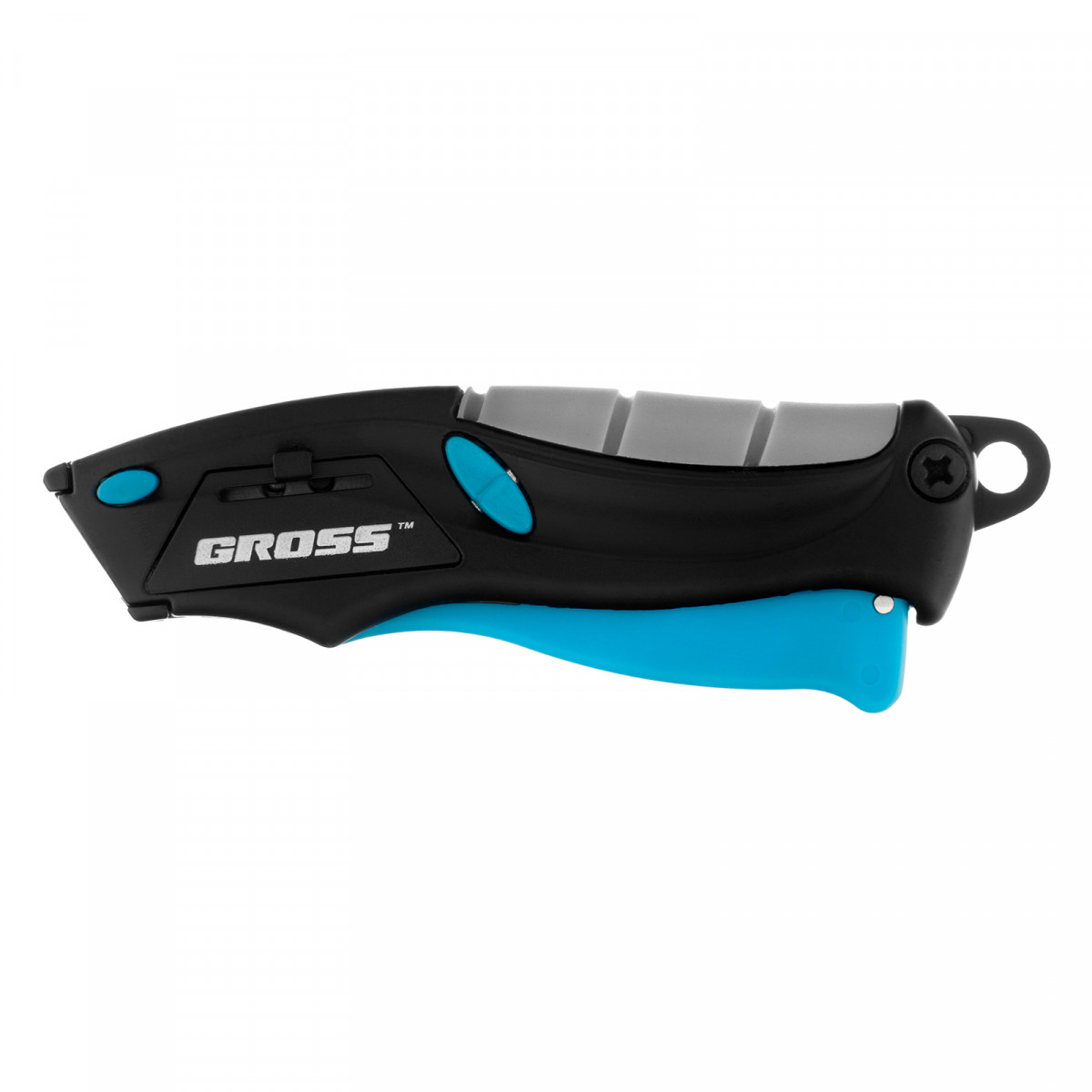 Нож ремонтно-монтажный мини, трехкомпонентная рукоятка, авто выброс, возврат лезвия, 100 мм, 2 запасных лезвия Gross