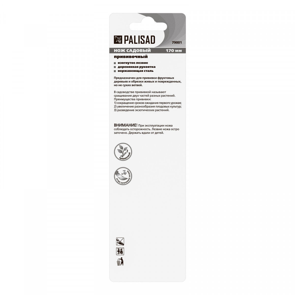 Складной садовый нож Palisad 79001 длиной 170 мм, с деревянной рукояткой, имеет изогнутое лезвие серповидной формы, поэтому легко срезает ветки и грибы. Он пригодится садоводам для удаления шипов со стеблей, зачистки поперечных срезов и т.д. Нож складной конструкции удобно транспортировать и хранить, т.к. лезвие спрятано в корпус. Для сохранения остроты лезвия и предотвращения появления налета рекомендуется после использования протирать его сухой салфеткой и смазывать маслом.