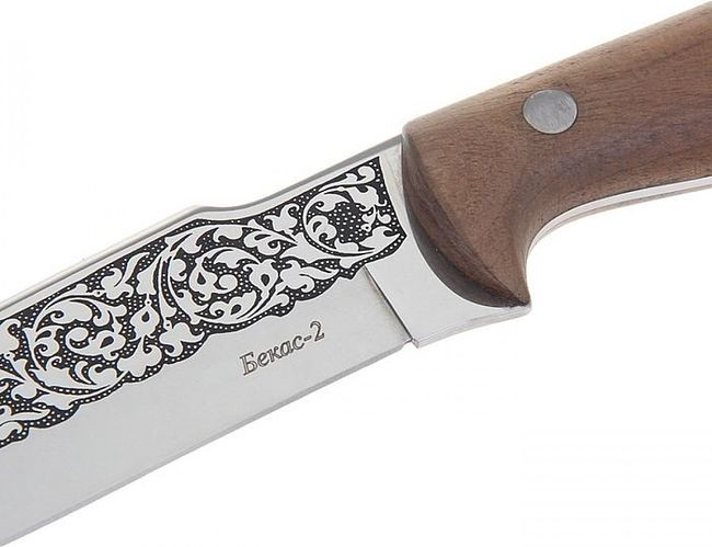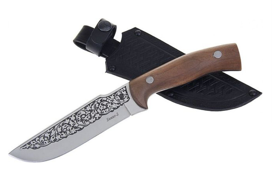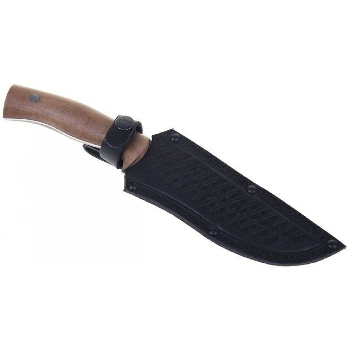 Полная длина: 265 мм. Длина клинка: 140 мм. Толщина клинка: 2,4 мм. Заточка: вогнутая. Ножны: поясные ножны из натуральной кожи. Форма клинка: прямая, нижний край сводится к острию. Материал клинка: коррозионно-стойкая сталь. Конструкция: половины рукояток с помощью штифтов скреплены с клинком. Примечание:* не относится к холодному оружию. Рукоятка: кавказский орех