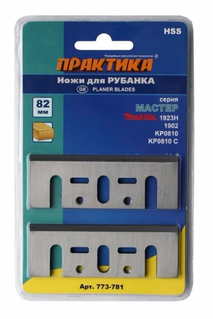 Ножи для рубанка ПРАКТИКА 773-781 82x29x3мм, HSS, для MAKITA 1923H/1902/KP0810, 2шт., в блистере.