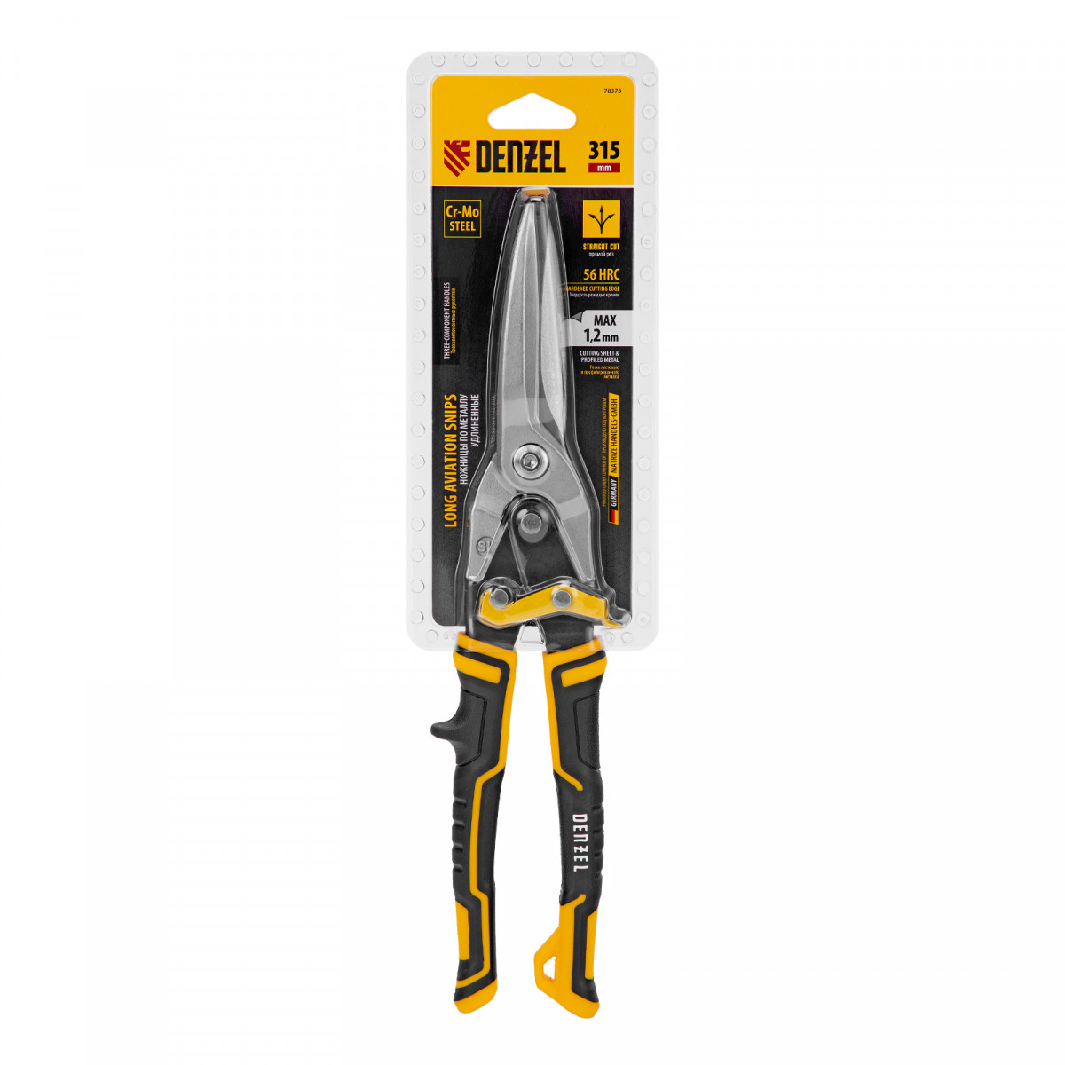 Ножницы по металлу, 315 мм, прямой проходной рез, сталь-CrMo, трехкомпонентные рукоятки Denzel