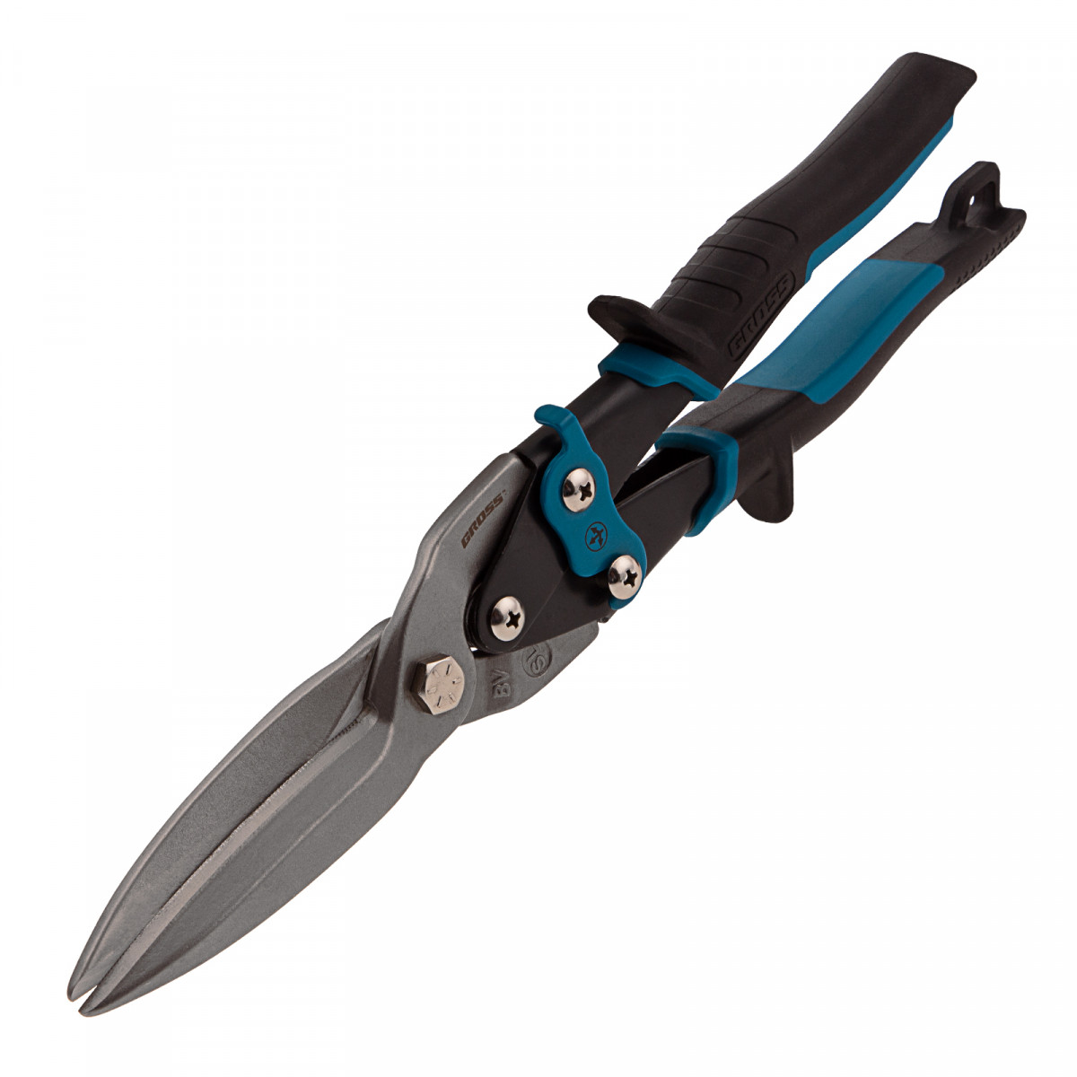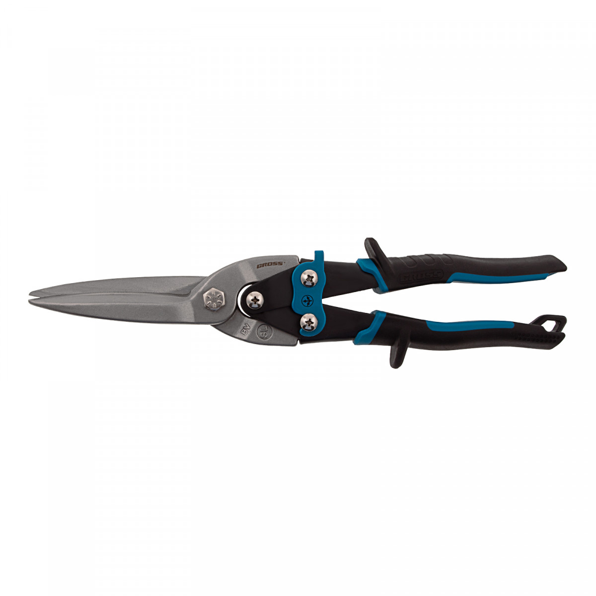 Ножницы по металлу "Piranha", 270 мм, прямой проходной рез, сталь СrMo, двухкомпонентные рукоятки Gross