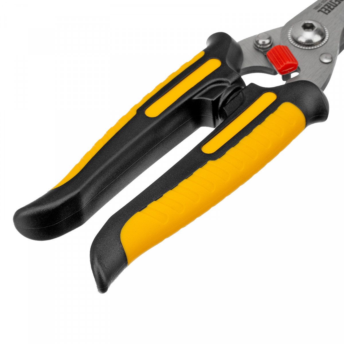 - Безопасность — замок-фиксатор удерживает лезвия сомкнутыми при хранении и транспортировке инструмента.