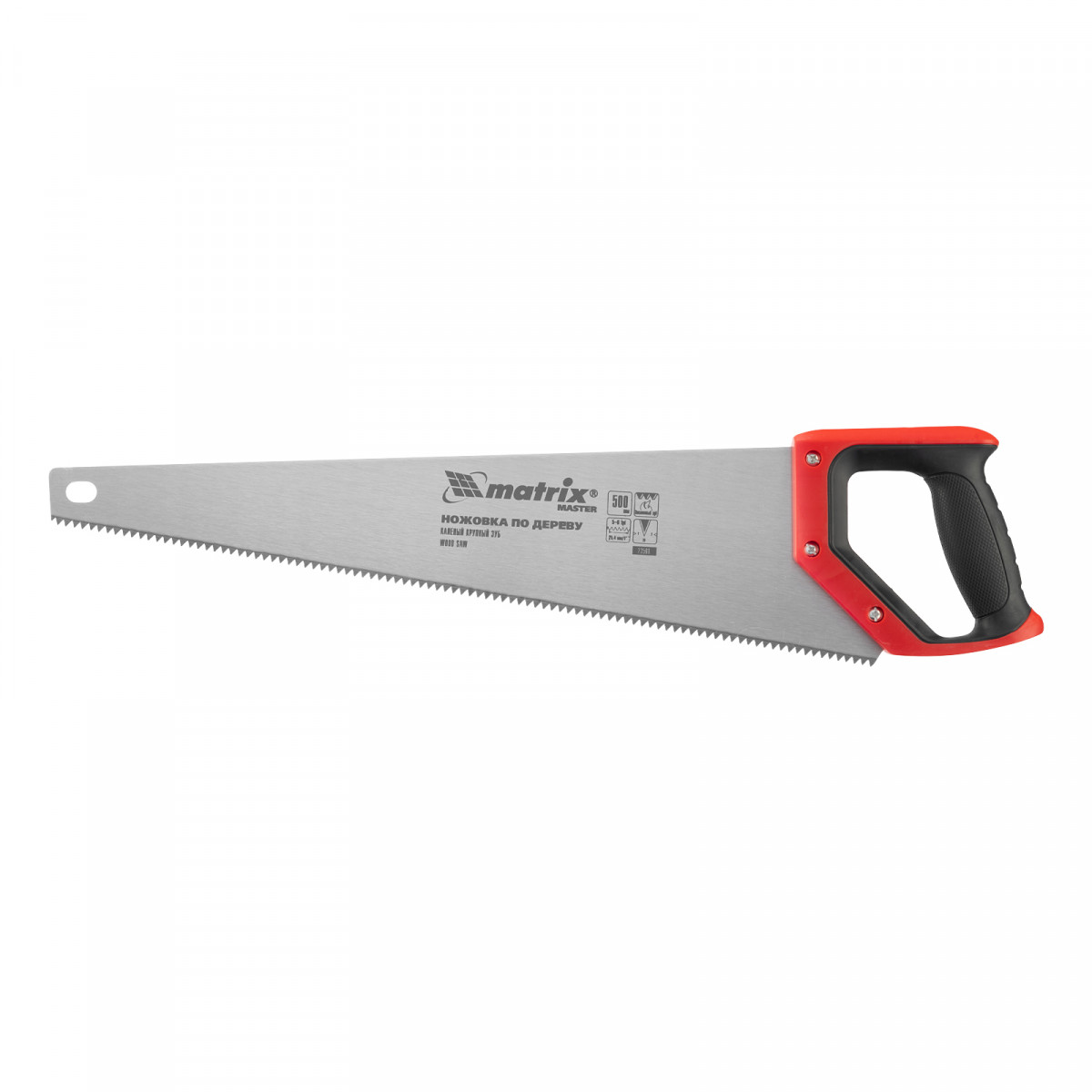 Ножовка по дереву Matrix 23560 с полотном длиной 500 мм, с крупными калеными зубьями с шагом 5-6 TPI, волновой вырубкой и 2D-заточкой, с двухкомпонентной рукояткой, используется для быстрой продольной или поперечной распиловки древесины. Высокая скорость работы достигается благодаря крупным зубьям с волновой заточкой и универсальным шагом 4-5 мм. Двухгранная заточка зубьев дает возможность пилить в направлении как от себя, так и на себя, а также перетачивать режущую кромку при необходимости. Ножовка подходит для выполнения плотницких и хозяйственных работ.