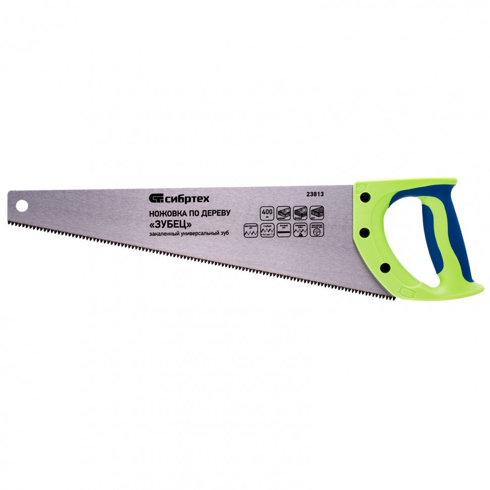 Ножовка по дереву "Зубец", 400 мм, 7-8 TPI, каленый зуб 3D, двухкомпонентная рукоятка Сибртех