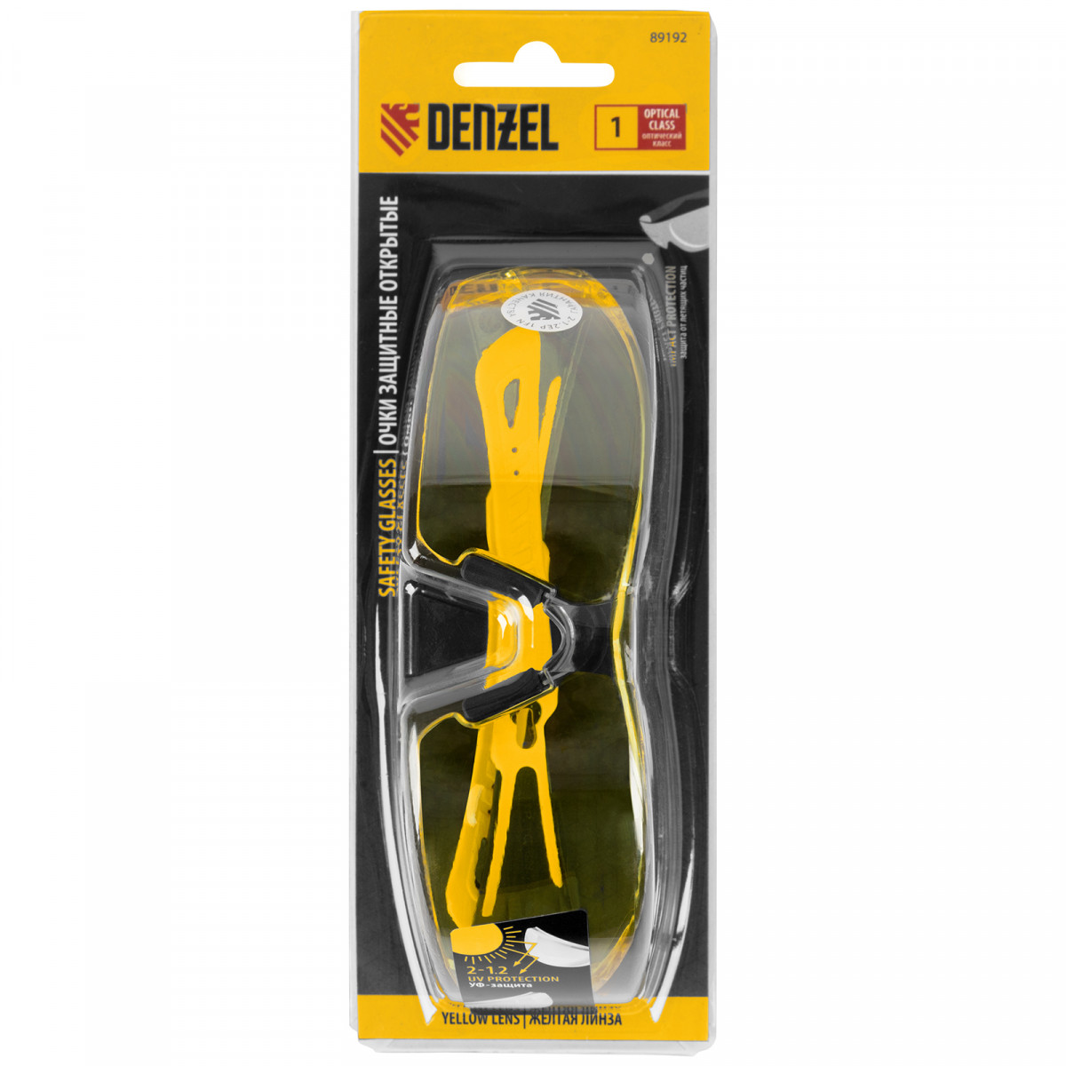 Легкие универсальные защитные очки открытого типа Denzel 89192 с поликарбонатными желтыми линзами и 2-компонентными дужками предназначены для защиты глаз от механических повреждений и УФ-излучения. Очкам присвоен класс механической прочности F, они обеспечивают защиту от высокоскоростных частиц с низкоэнергетическим ударом V=45 м/с. Очки используются во время работы с электро- и бензоинструментом, на производстве и в быту.