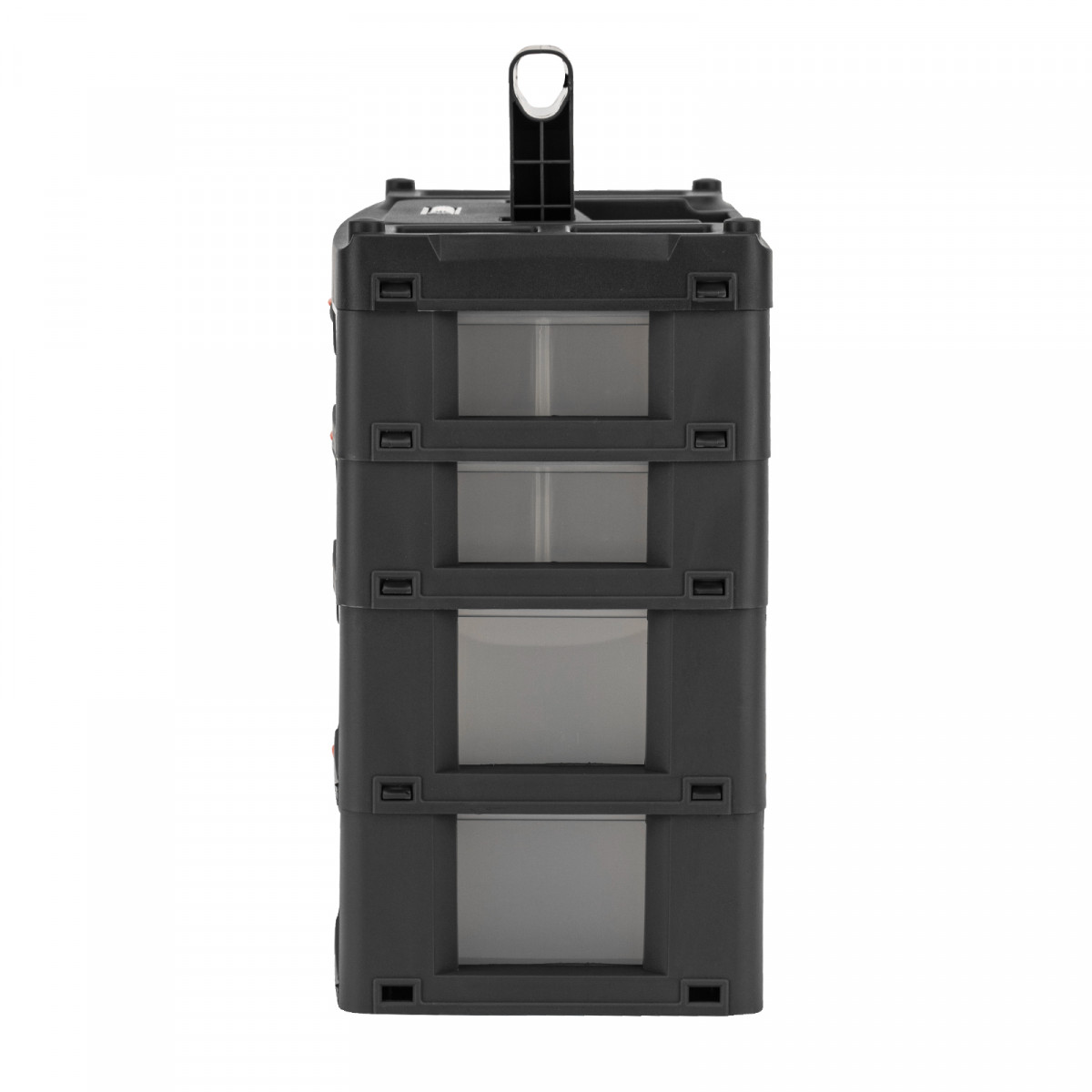 - Комфортная транспортировка — благодаря рукоятке и защелкам, предотвращающим случайное открытие, органайзер удобно перемещать.