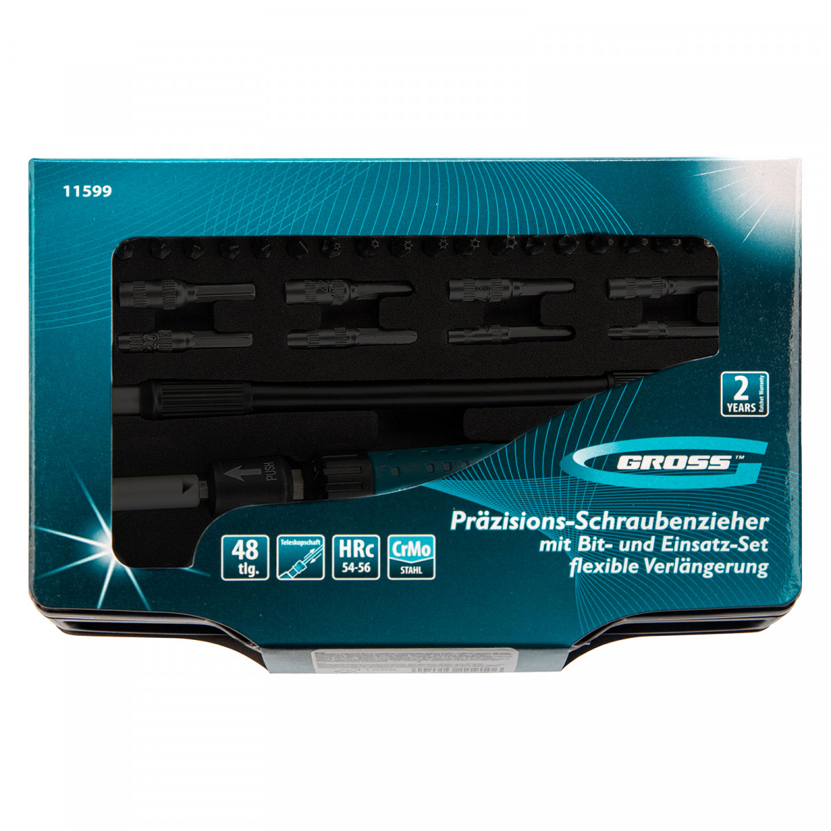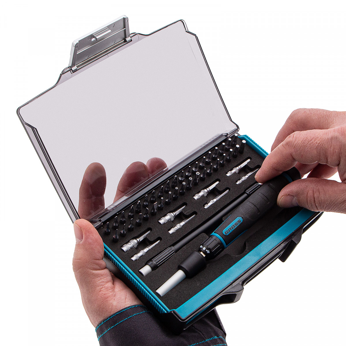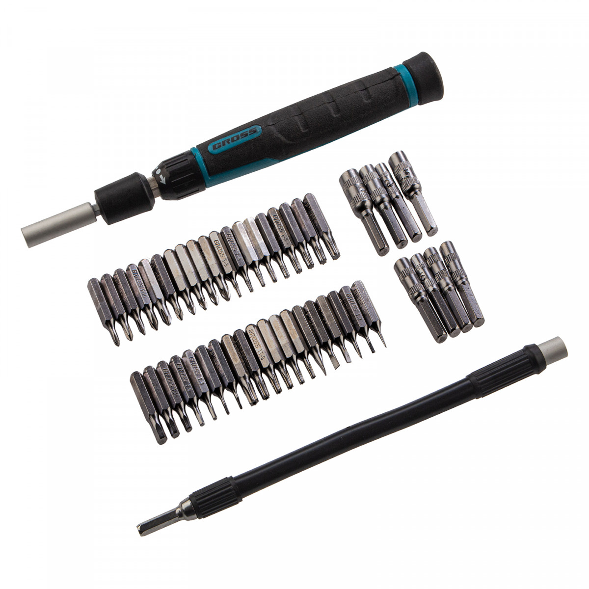 Отвертка с набором бит и торцевых головок для точных работ, гибкий привод, 48 шт, CrMo Gross