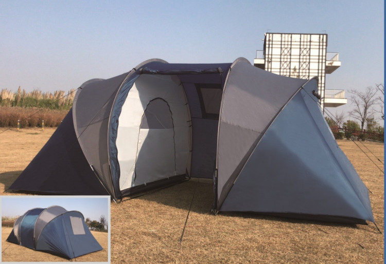 Универсальная 4-местная палатка для туристов и путешественников, с 2-мя отдельными комнатами, материал: полиэстер, двухслойная. Востребованная палатка для любителей отдыха на природе.