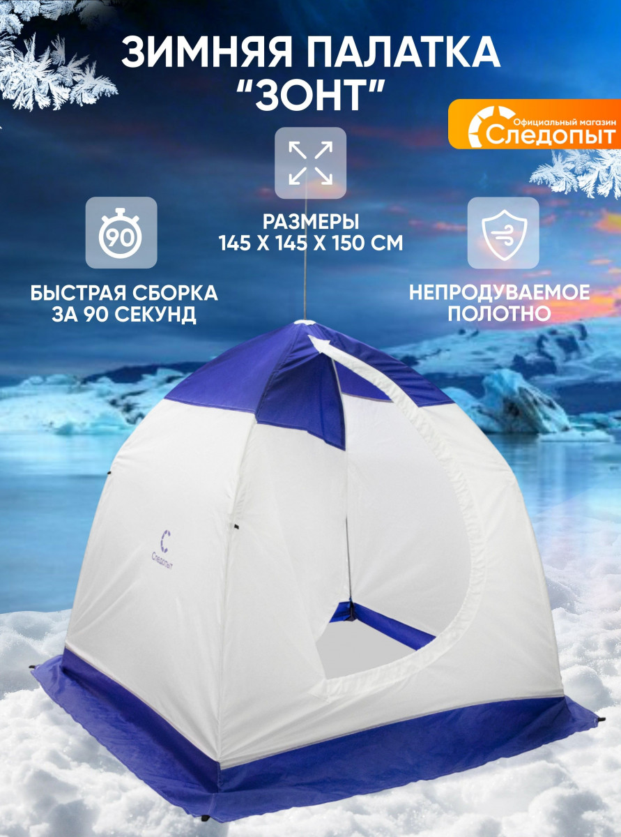 Палатка зимняя зонт СЛЕДОПЫТ Oxford 210D PU 1000 S по полу 1,9 кв.м синий/белый