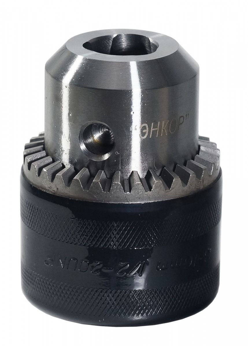 Патрон сверлильный ЗВП (3-16 мм; 1/2") Энкор 23519 предназначен для закрепления цилиндрического хвостовика режущего инструмента в ручных дрелях и станках.