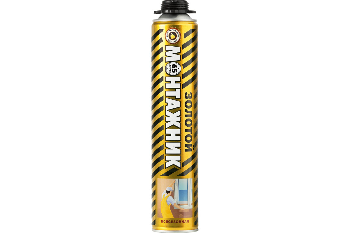 Монтажная пена PROFFLEX Золотой монтажник PRO 65 л всесезонная, 850 мл 70312 - профессиональная универсальная однокомпонентная полиуретановая пена предназначена для работы в диапазоне температур от -15 до +35 градусов. Выход пены до 65 литров.Используется для заполнения щелей в соединениях стен и перекрытий, а также для герметизации при монтаже окон и дверей.Средство характеризуется прекрасной адгезией к кирпичу, бетону, камню, металлу, глазурованной поверхности, пластмассе.