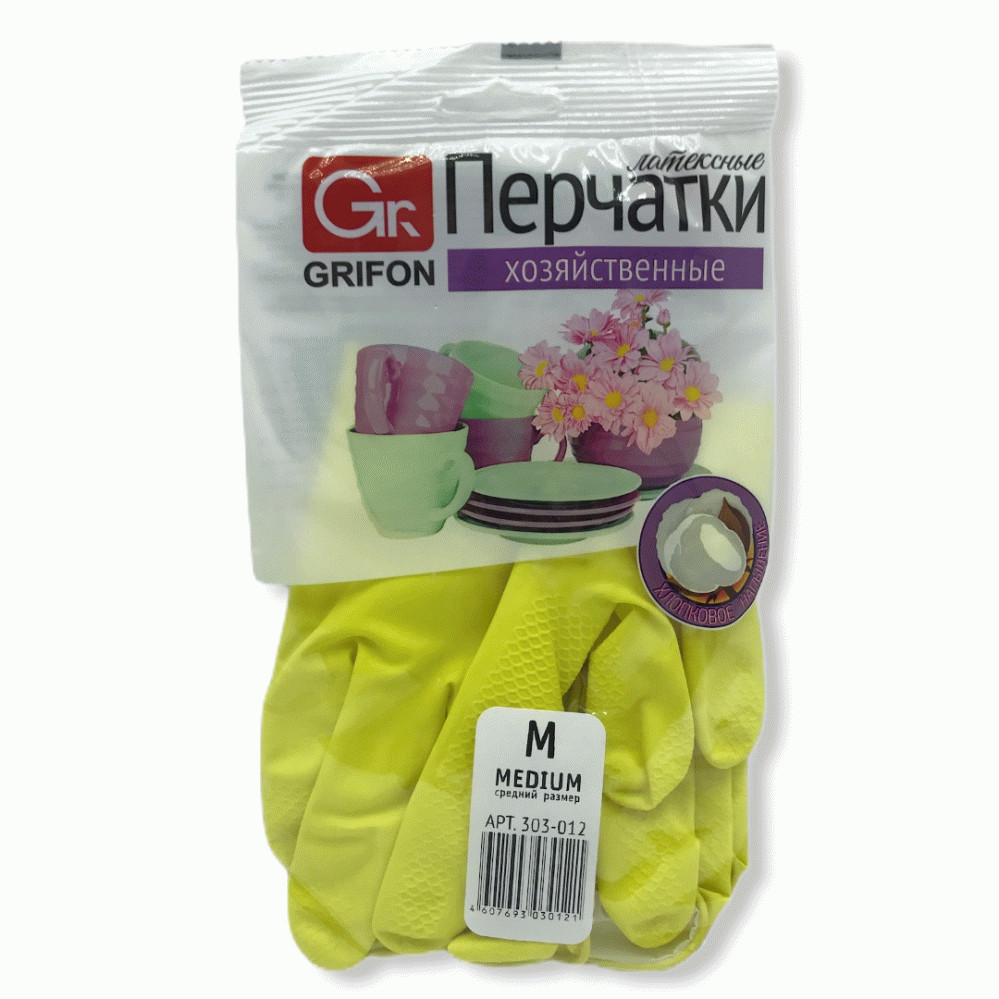 Перчатки латексные GRIFON с хлопковым покрытием, р-р XL