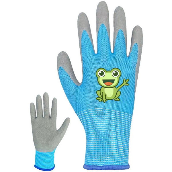 Перчатки нейлоновые Лягушонок с полиур. покр. полуобл., голубые S