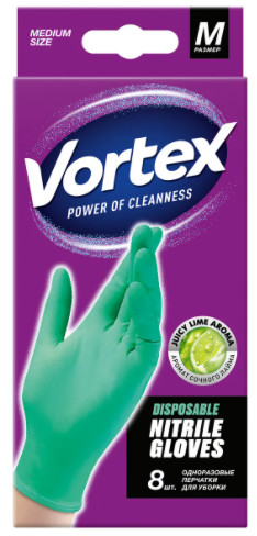 Перчатки нитриловые с ароматом лайма зеленые 8шт в упаковке VORTEX M