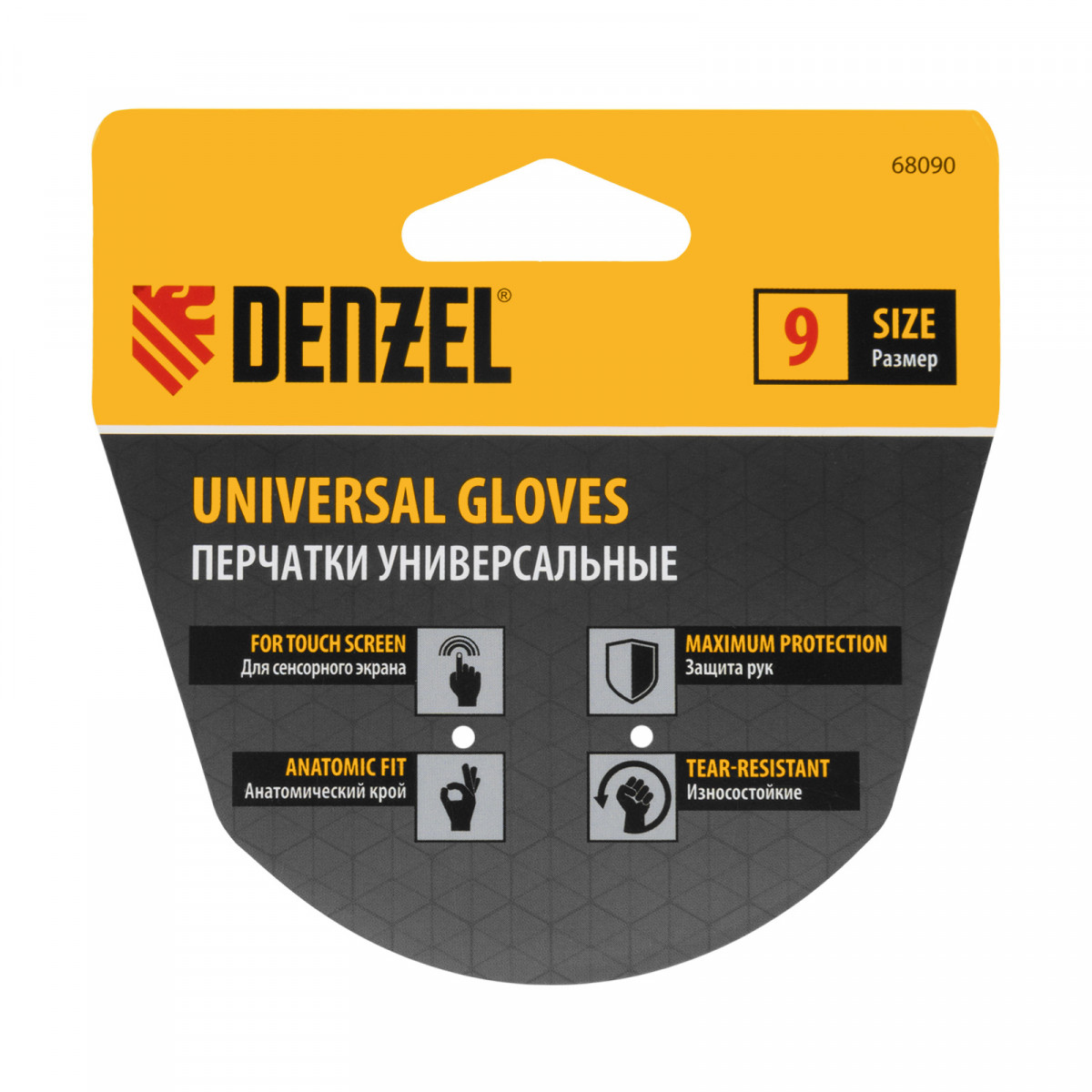 Перчатки универсальные, двойные, работа с сенсорным экраном, размер 9 Denzel