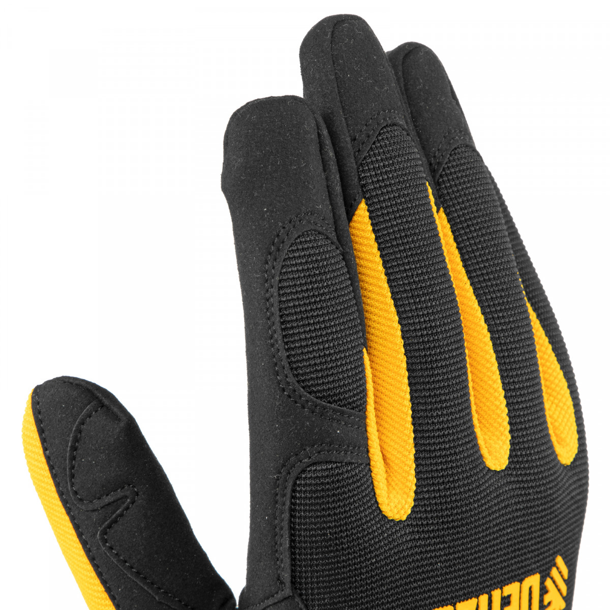 Универсальные перчатки Denzel 67994 размера 10, с манжетами на «липучке», используются для работы со слесарным инструментом. Надежно защищают кожу рук от царапин и мозолей. Пригодятся в мастерской, дома или в гараже.