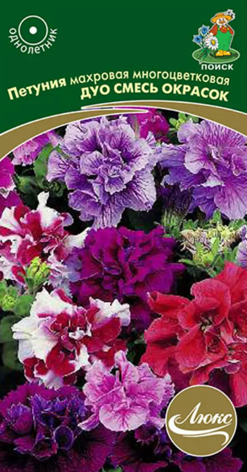 Петуния махровая многоцветковая Дуо смесь окрасок 10шт Поиск
