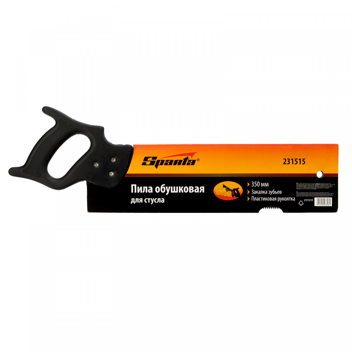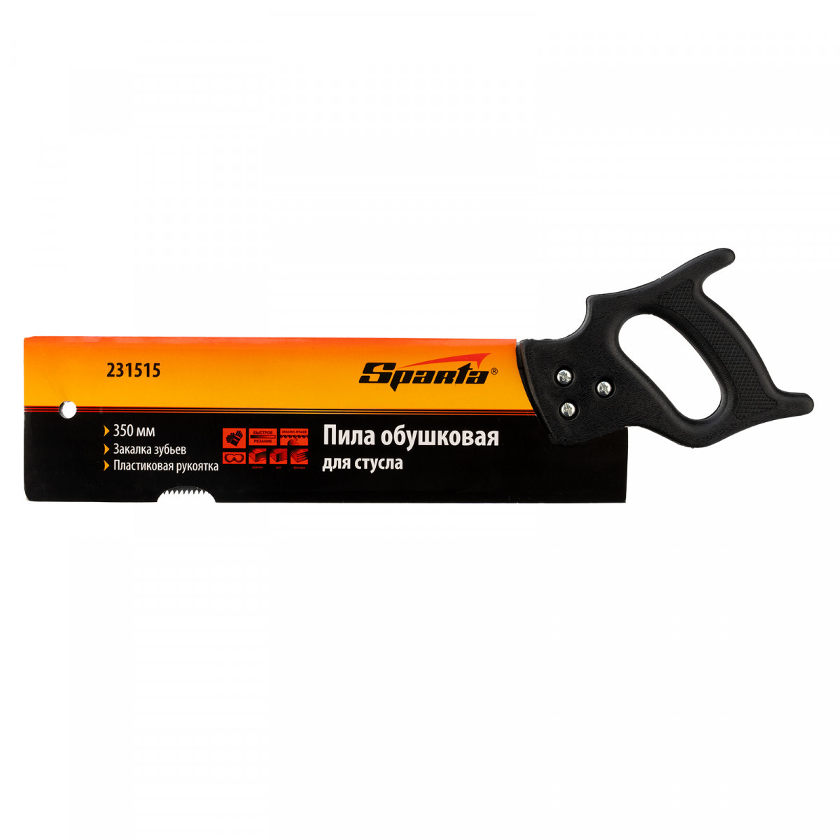 Обушковая пила для стусла Sparta 231515 с полотном длиной 350 мм используется для распиливания под углом заготовок из древесины, фанеры или ДСП. Пилить можно вдоль или поперек волокон. В верхней части полотна имеется ребро жесткости, которое не дает ему сгибаться. Шаг зубьев составляет 7-8 TPI, что обеспечивает быстрый рез. Допускается переточка режущей кромки. Инструмент применяется во время выполнения столярных работ.