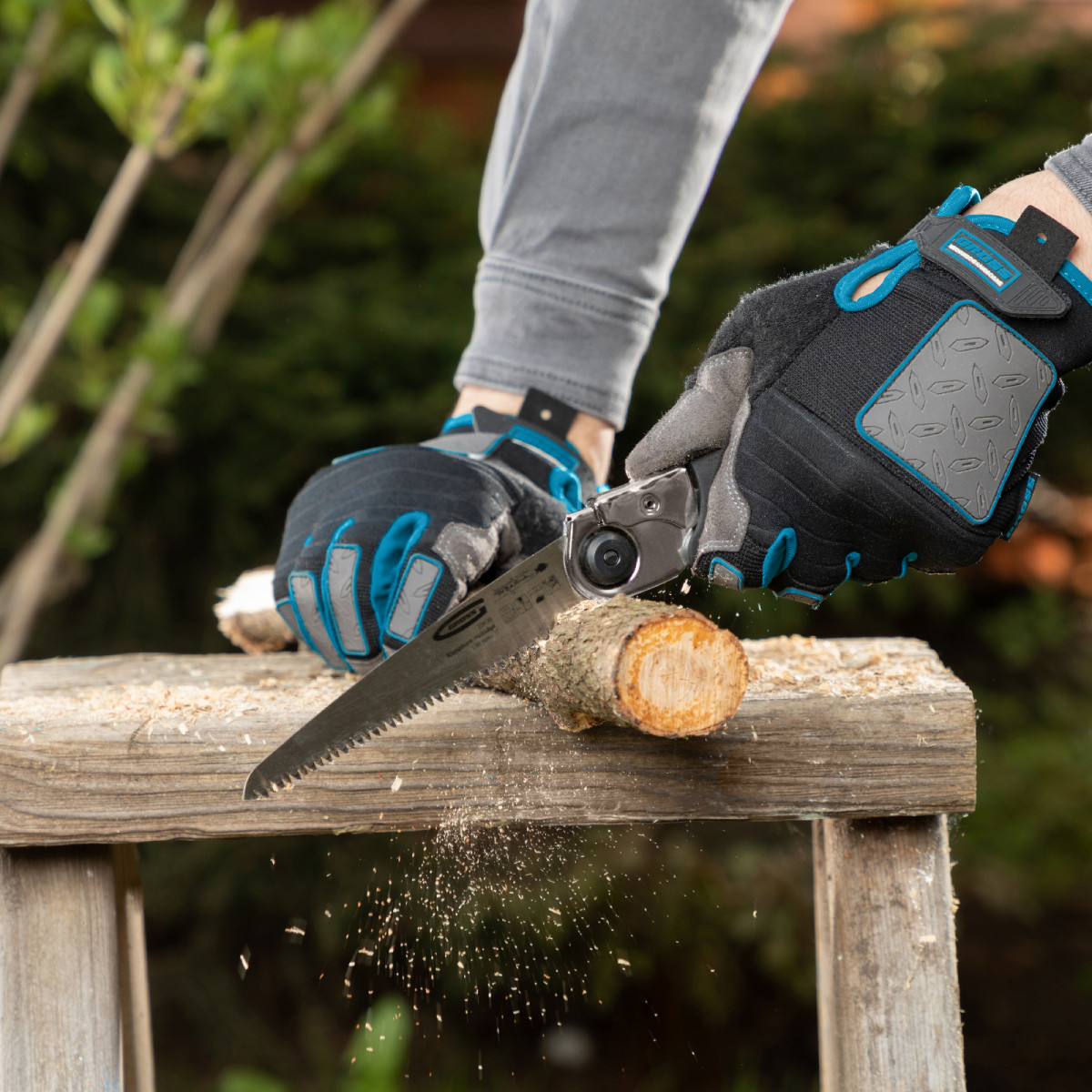 - Удобное хранение и транспортировка — в рукоятке предусмотрено отверстие для подвешивания пилы.