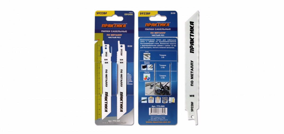 Пилки для сабельной пилы S 922 BF BIM, по металлу, шаг 1,8 мм, длина 150 мм (2шт.) ПРАКТИКА