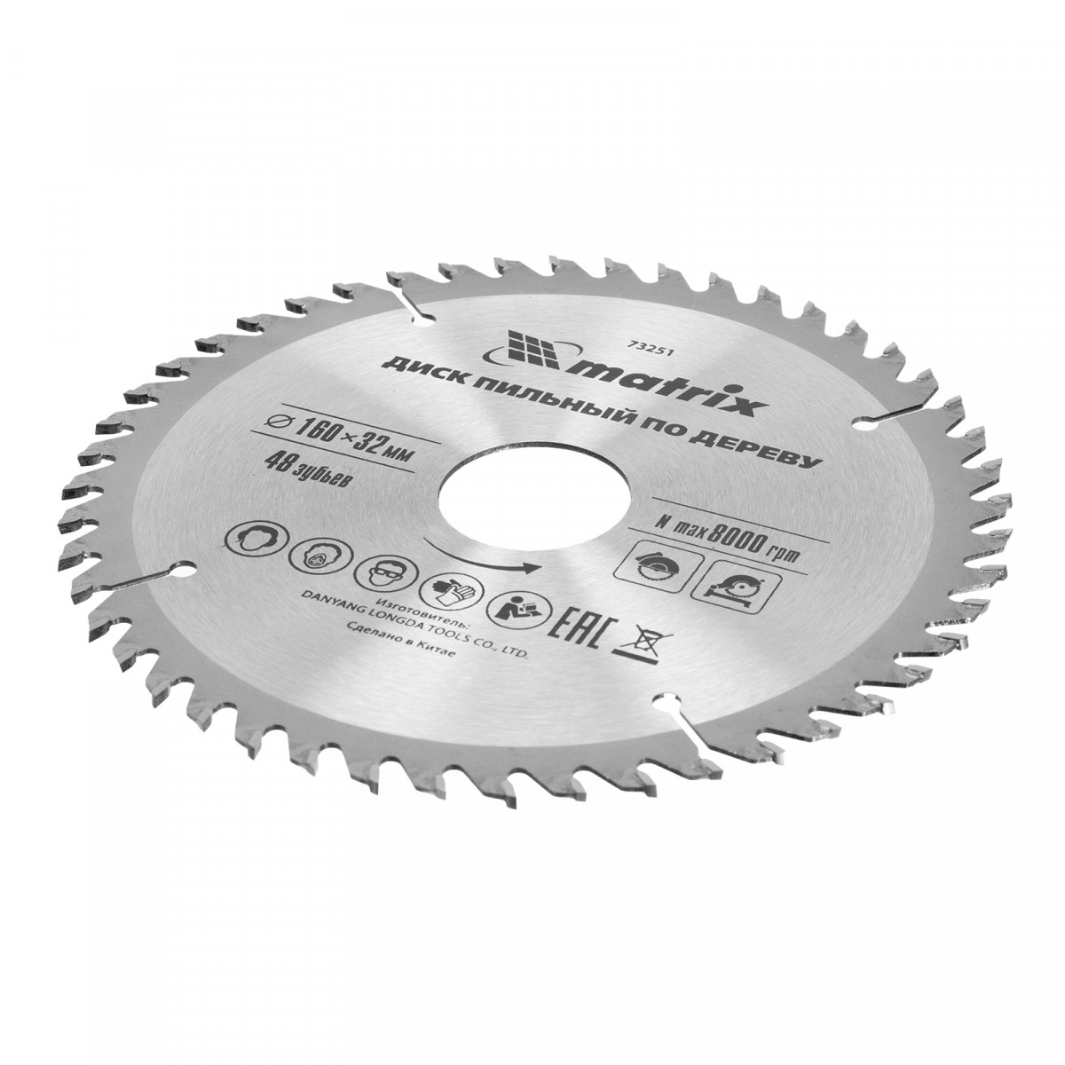Пильный диск по дереву Matrix 73251 диаметром 160 х 32 мм, с 48 зубьями, — оснастка для циркулярных и торцовочных пил с соответствующим посадочным и внешним диаметром. Используется преимущественно для поперечного реза материалов из мягкой и твердой древесины, ДСП, ДВП, фанеры, столярных плит. Диск подходит для бытового и профессионального применения.