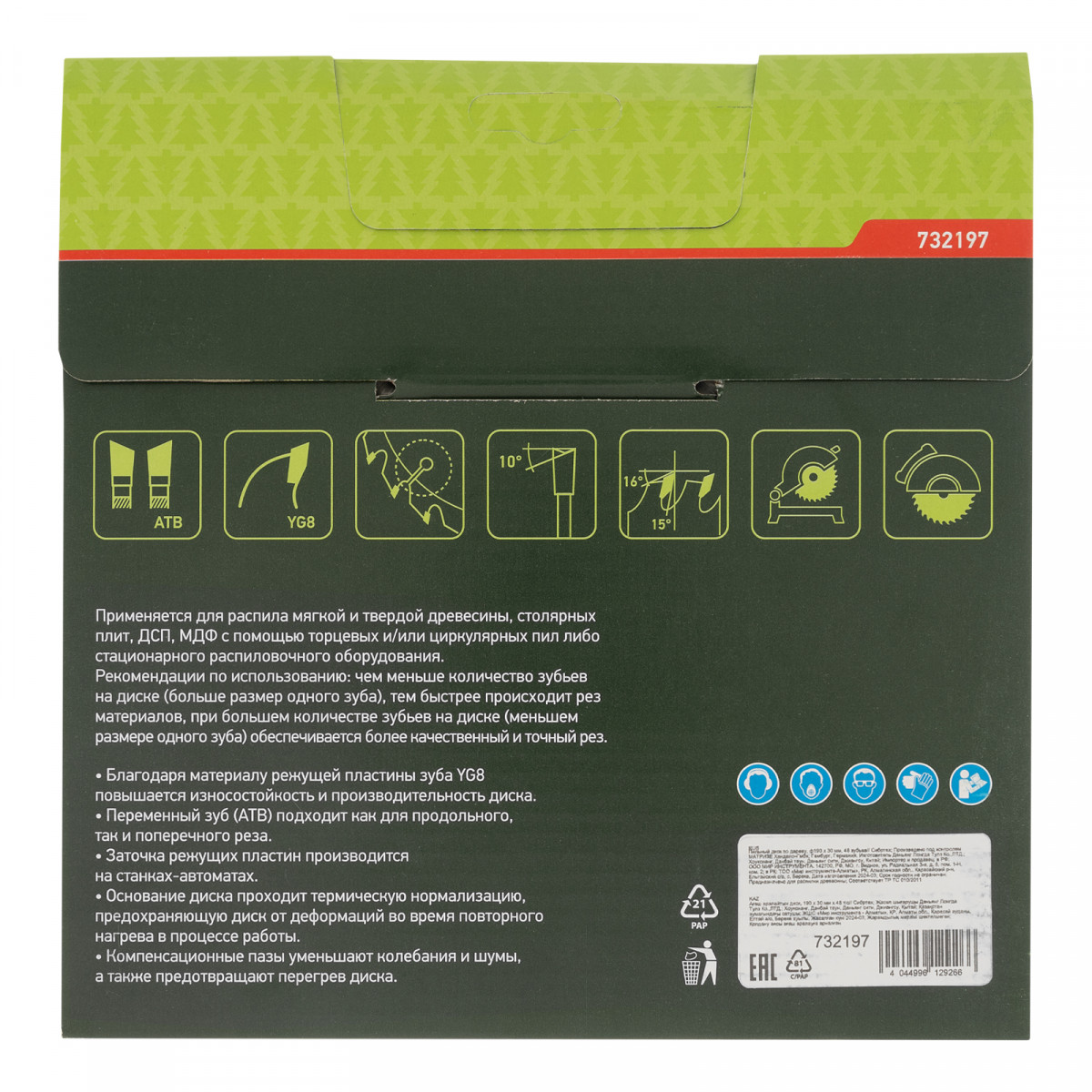 Пильный диск Сибртех 732197 диаметром 190 х 30 мм, с 48 зубьями, используется с торцовочными и циркулярными пилами, а также с распиловочными станками. Предназначен преимущественно для поперечного пиления древесины мягких и твердых пород, фанеры, МДФ и ДСП. Благодаря мелким зубьям достигается высокая точность реза. Диск применяется для выполнения строительных, ремонтных работ, а также для решения бытовых задач.