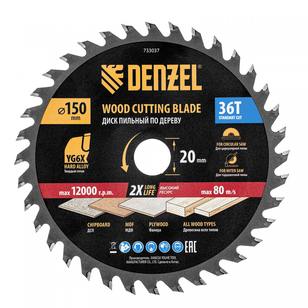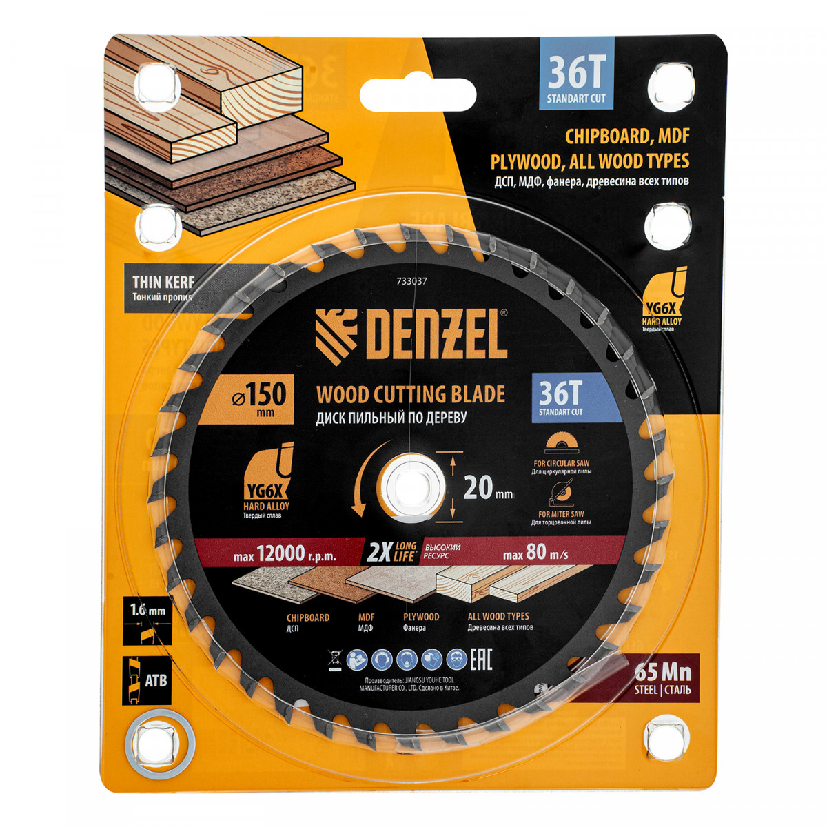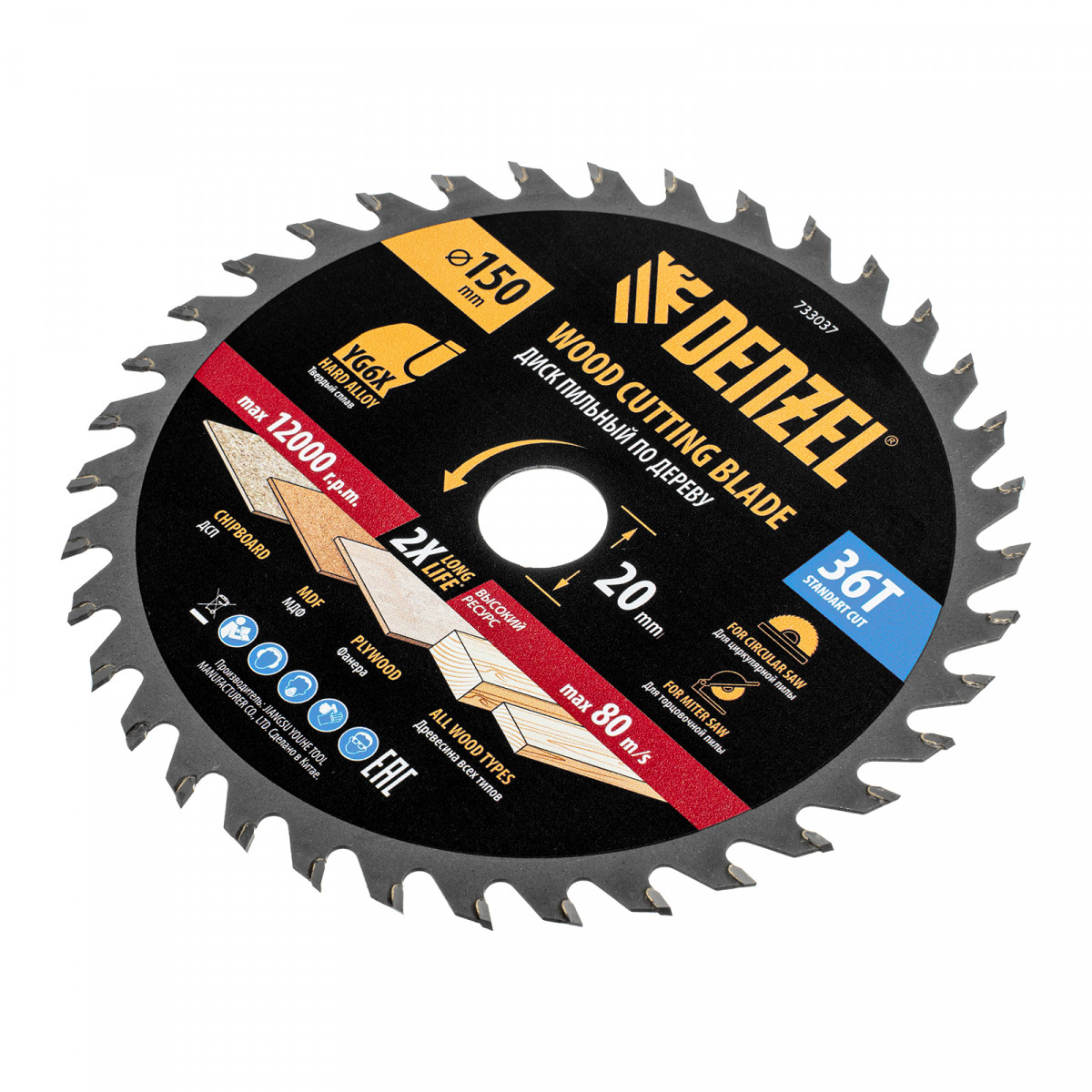 Тонкий пильный диск Denzel 733037 диаметром 150 x 20 мм, с 36 зубьями, устанавливается на циркулярную, торцовочную пилу или распиловочный станок и предназначен для выполнения работ по дереву. Подходит для распиливания древесины любого типа, а также фанеры, ДСП, МДФ. Зубья типа ATB обеспечивают высокое качество и скорость как продольного, так и поперечного распила. Тип реза — стандартный. Толщина диска уменьшена, что повышает производительность и снижает нагрузку на инструмент. На зубья напаяны твердосплавные пластины, длительное время сохраняющие режущую способность. Пластины из твердого сплава YG6X прошли многоступенчатую заточку, что позволило достичь оптимальной геометрии и максимальной эффективности распиловки.