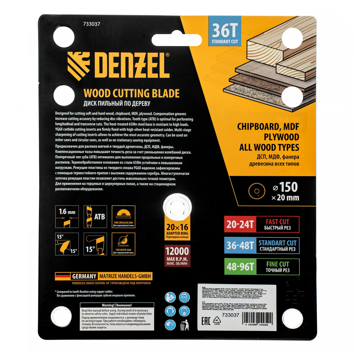 Пильный диск по дереву ф150 х 20 мм, 36 зубов, тонкий Denzel