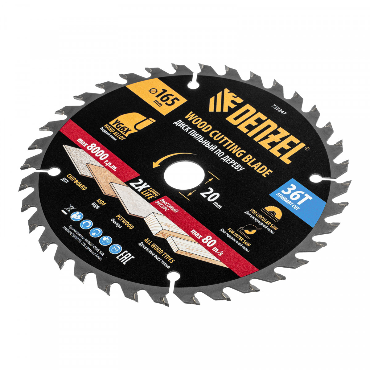 Пильный диск по дереву ф165 х 20 мм, 36 зубьев Denzel