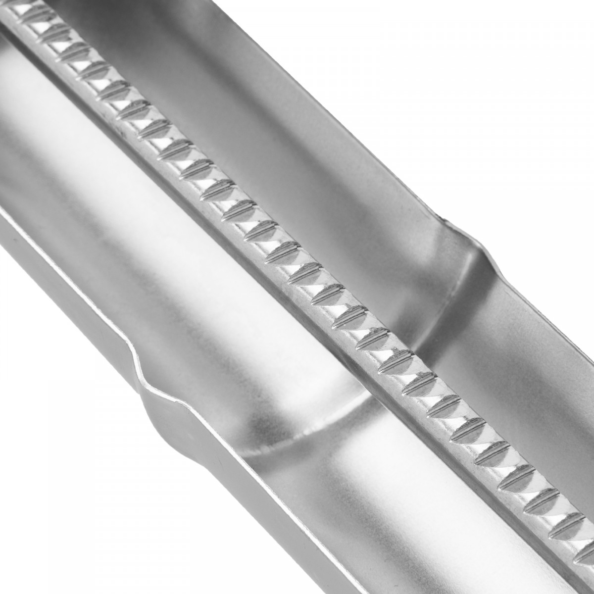 • Прочность и долговечность — корпус с 3 поперечными ребрами жесткости не перекашивается, хромовое покрытие обеспечивает защиту от коррозии.