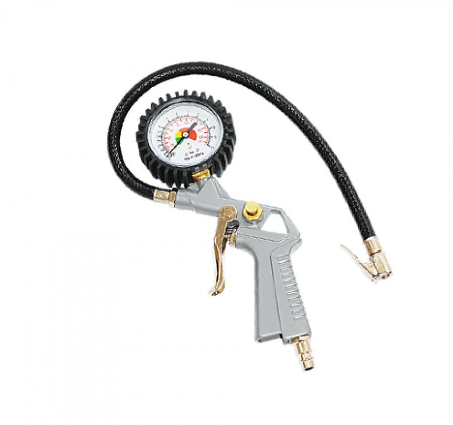 Пневмопистолет для накачки используется для наполнения шин и прочих емкостей воздухом. Рабочий диапазон давления составляет от 0 до 10 бар. Текущий уровень давления можно определить с помощью встроенного манометра. Металлический корпус отличается хорошей устойчивостью к механическим повреждениям.