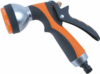 Пистолет для полива выполнен из металла, покрытого мягким пластиком.