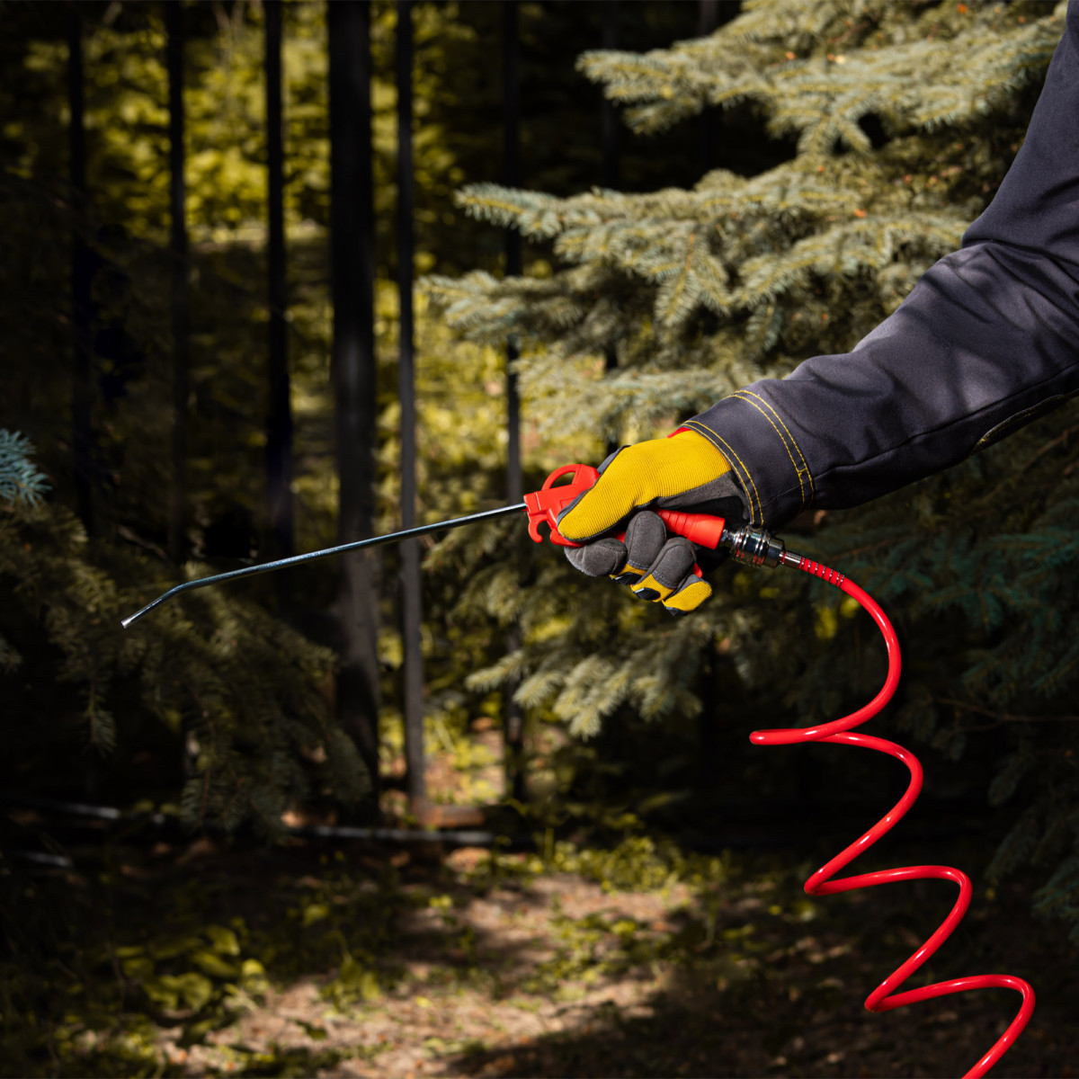 • Высокая эффективность — изогнутое сопло облегчает работу в труднодоступных местах, позволяя прочистить очень узкие отверстия.