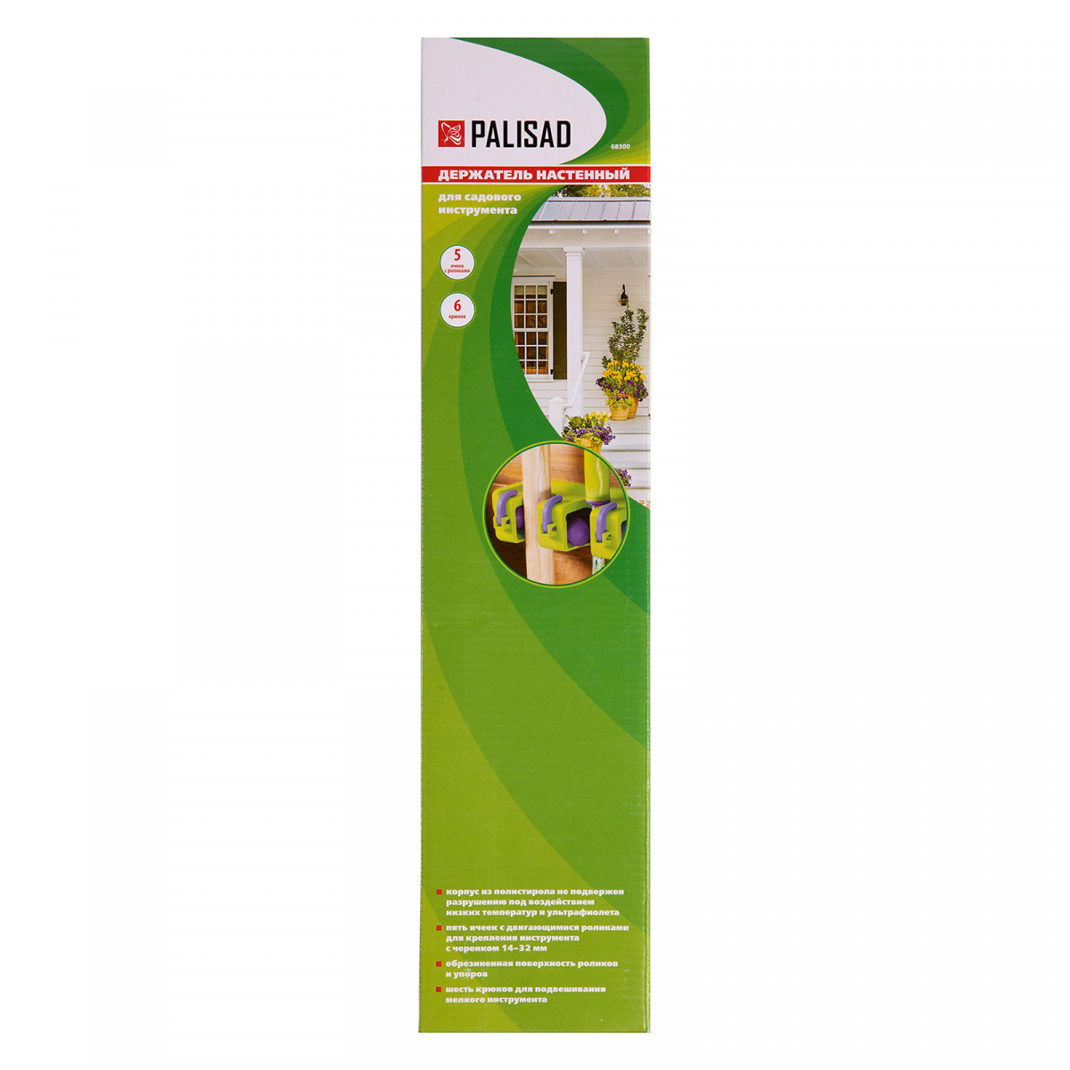 Пластиковый настенный держатель для садово - огородного инструмента, 5 ячеек, 6 крюков, Palisad