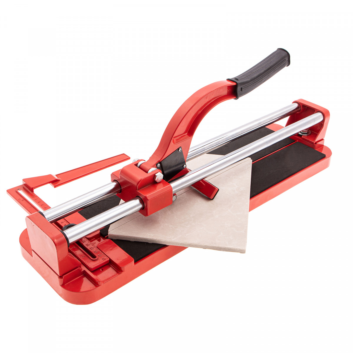 Плиткорез MTX 87605 с литой станиной, кареткой на подшипниках и усиленной рукояткой, используется для резки кафельной плитки размером до 400 х 16 мм. Ходовая каретка представляет собой массивный цельнолитой закрытый корпус, внутри которого размещаются цилиндрические шариковые подшипники, благодаря которым каретка перемещается по направляющим свободно даже при их загрязнении. Отсутствие люфтов в каретке позволяет выполнять рез максимально точно. Инструмент будет полезен мастерам в ходе бытовых облицовочных работ.