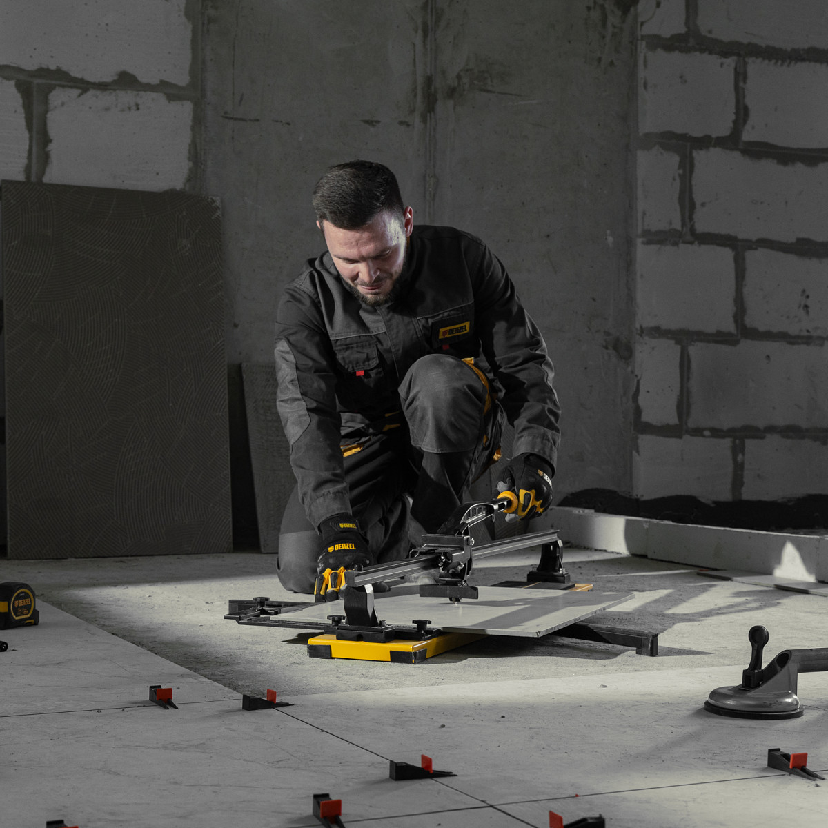• Эргономичность — плитколом с магнитным держателем не создает помех во время резки.