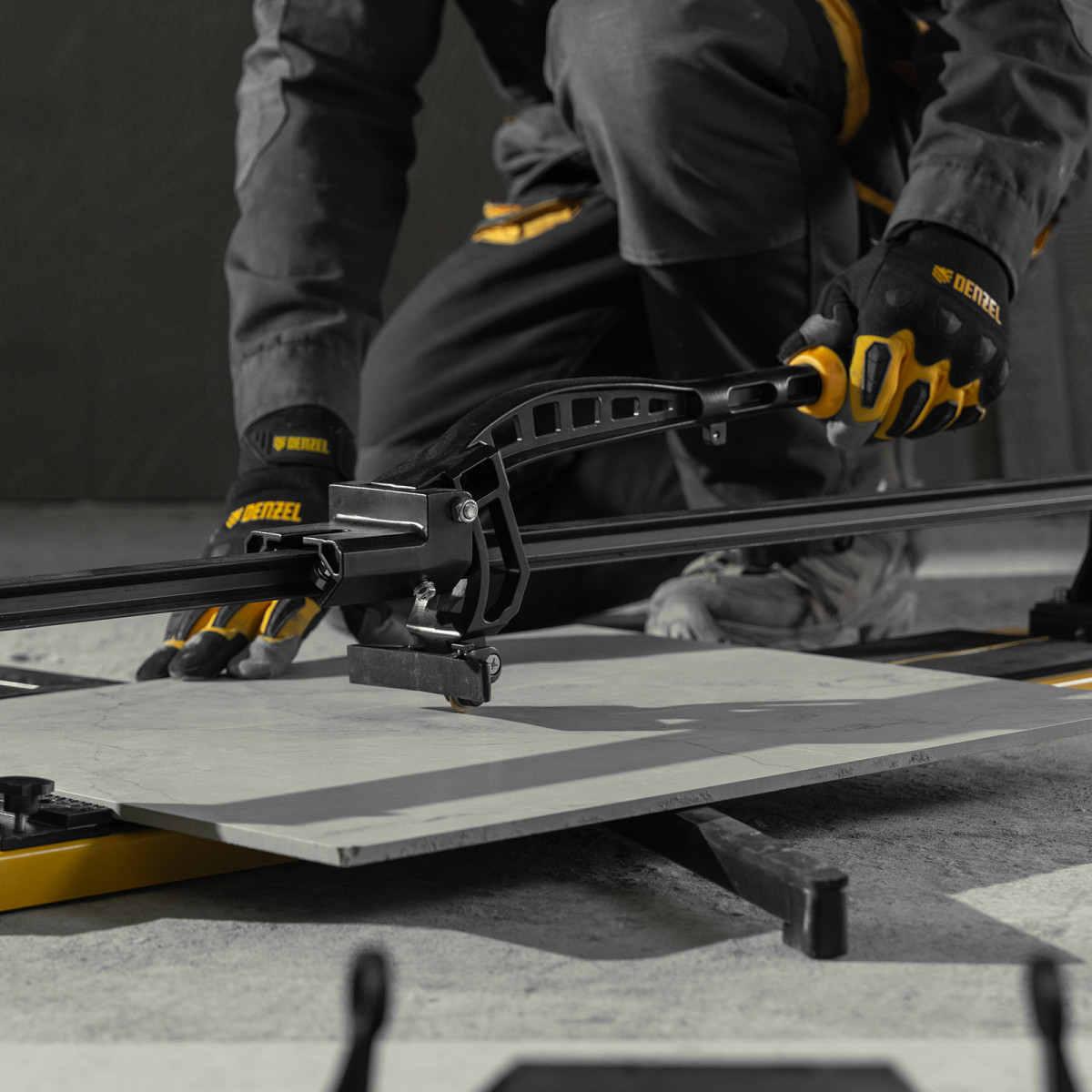 Плиткорез рельсовый 800х16мм, каретка на подш., стальная станина, усил. рукоятка-пенал Denzel
