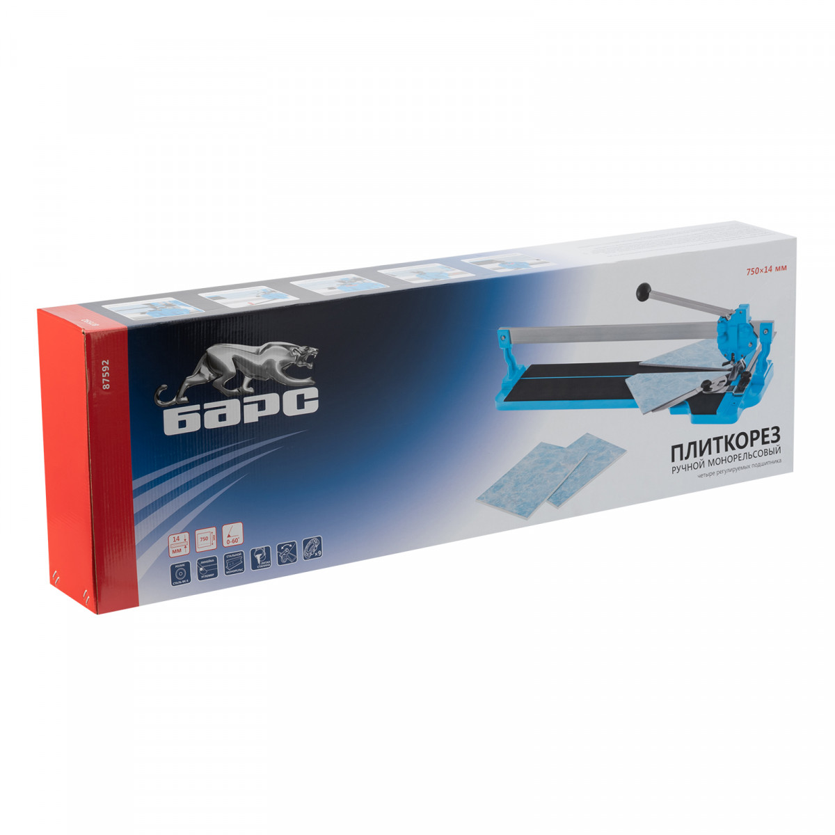 Плиткорез ручной монорельсовый 750 х 14 мм, ходовая каретка, 9/4 регулировка подшипников, литая станина Барс