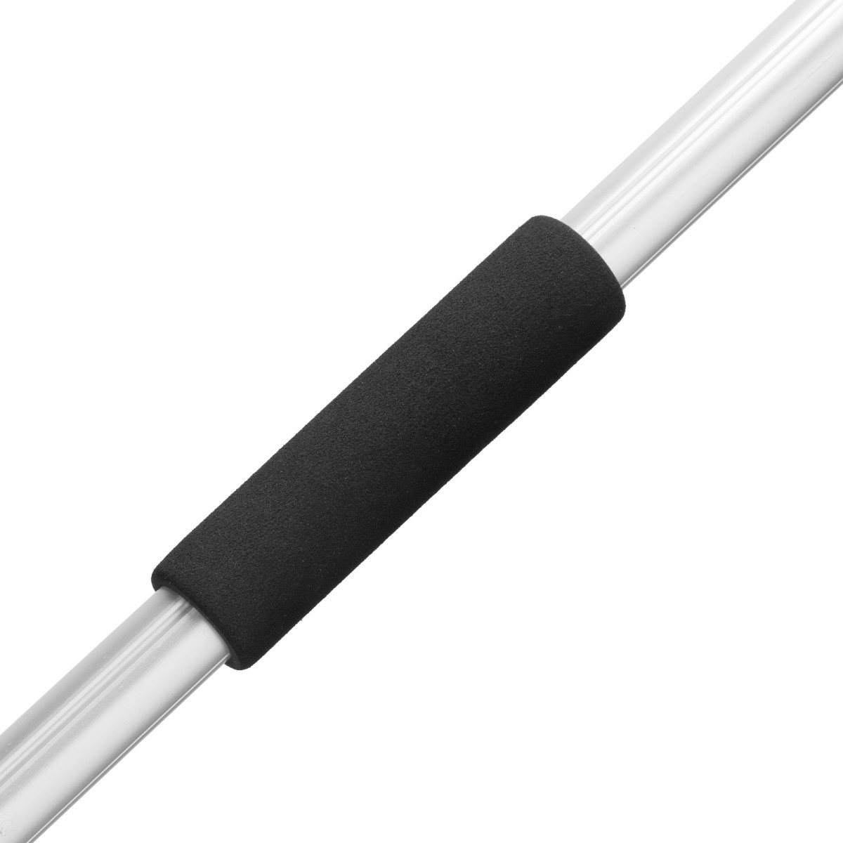 - Эргономичность — алюминиевая штанга не утяжеляет конструкцию, ПВХ-накладка и полипропиленовая рукоятка обеспечивают надежный хват.