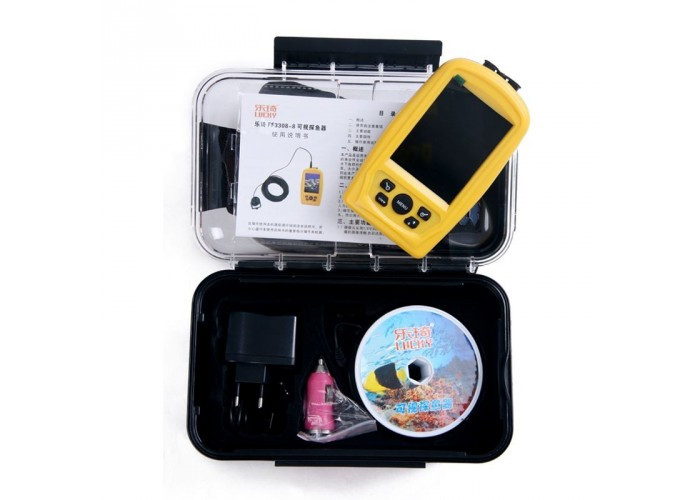 Комплектация: подводная видеокамера, 17 метров кабель, зарядные устройства: от прикуривателя автомобиля и от сети 220 В, пластиковый бокс, инструкция