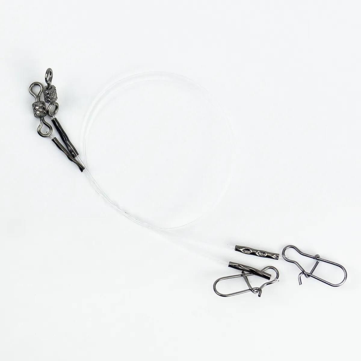 Флюорокарбоновые поводки от бренда Namazu продаются в упаковке по две штуки. Они равной длины и диаметра и выдерживают одинаковую нагрузку. Один вариант имеет в качестве креплений два карабина, второй - вертлюги. Таким образом рыболов может сделать выбор в зависимости от условий. Например, вертлюги будут удобнее при ловле на течении или с вращающимися блеснами. Поводки Namazu из флюорокарбона подойдут и спиннингистам, и донщикам. Прозрачный материал не отпугнет осторожную рыбу, так как практически незаметен в воде. При этом он прочный, не боится контактов с абразивом. Однако все-таки следует опасаться острых щучьих зубов. В серию вошли поводки с разрывной нагрузкой до 18,88 кг, что позволяет бороться даже с сильным, норовистым трофеем, типа карпа, сома или прудовой форели.