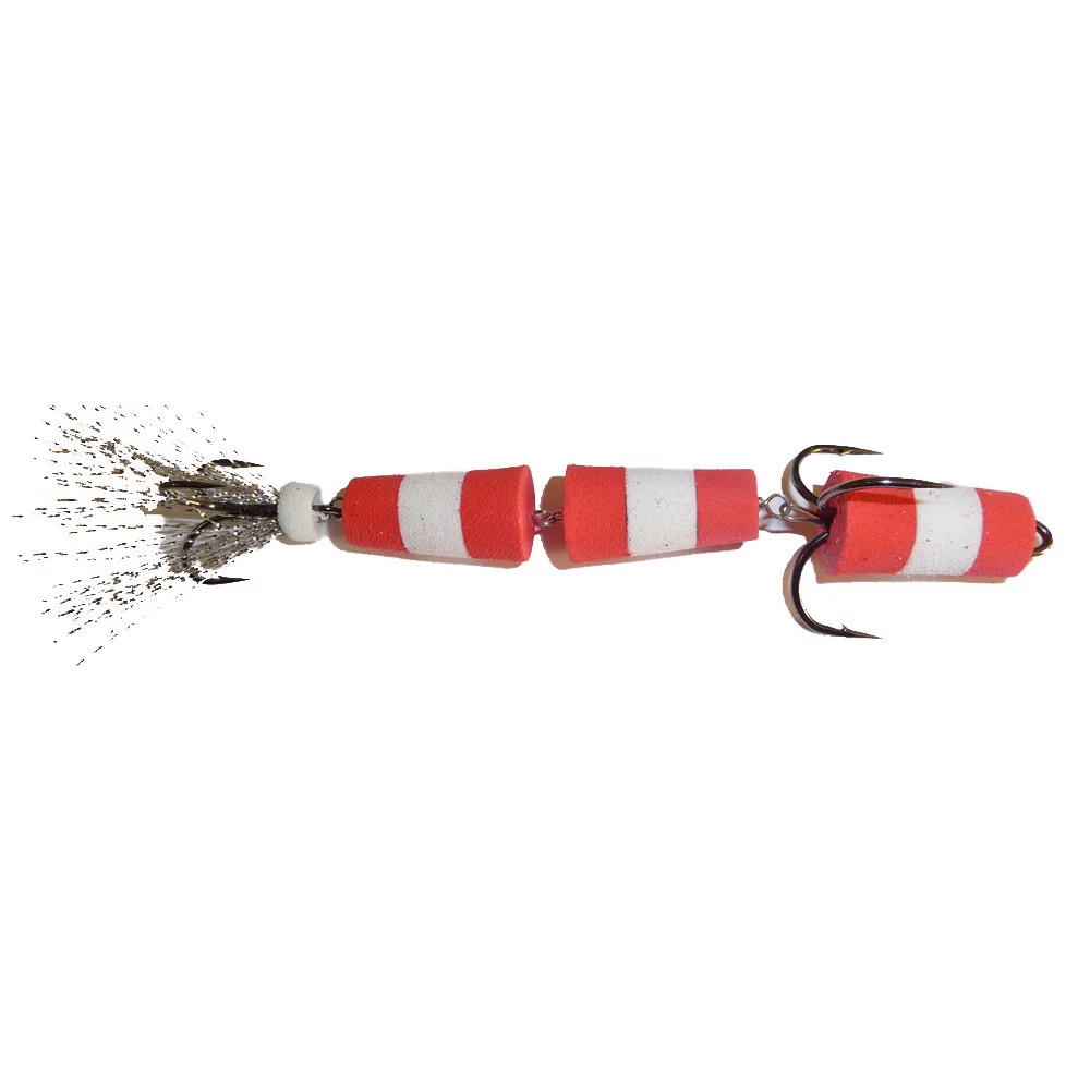 Модель №130 – 3-х-секционная приманка с двумя тройниками, предназначенная в первую очередь для судака, когда он предпочитает некоего «червячка». Отличается она и игрой – виляет хвостиком, что особенно заметно при медленной проводке. Практика показала, что и крупная щука также не прочь полакомиться приманкой несколько большего размера. Применяется в незакоряженных водоемах. Тройники №1/0 Kumho и №4 Sung-Woon (Корея).
