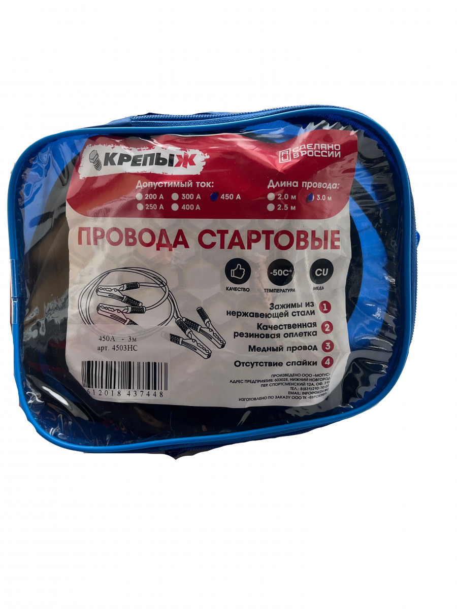 Стартовые провода КРЕПЫЖ предназначены для запуска двигателей легковых и грузовых автомобилей с разряженной аккумуляторной батареей при любых погодных условиях.