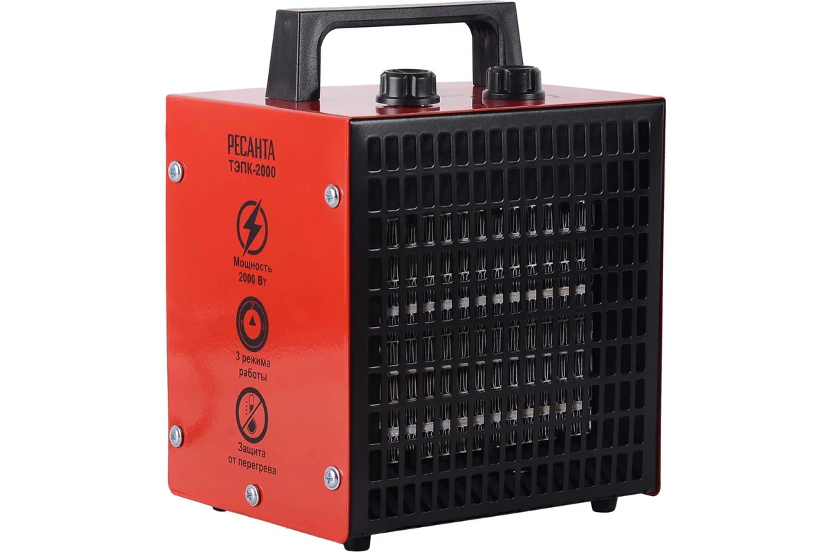 Обогреть гараж, уютный дачный дом или помещение другого назначения можно посредством использования электрической тепловой пушки модели Ресанта ТЭПК-2000. Теплопушка оснащена керамическим нагревателем и работает на двух мощностях – 1кВт и 2кВт.