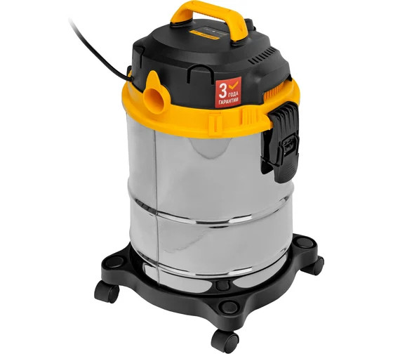 Пылесос строительный Denzel SVC15 28201 мощностью 1200 Вт, с баком объемом 15 л и шлангом длиной 2 м, предназначен для уборки бетонной, кирпичной пыли, опилок, стружки и других твердых отходов. Функция влажной уборки позволяет собирать воду с пола. Пылесос используется во время проведения строительных и ремонтных работ, будет полезен для поддержания чистоты в мастерской, гараже, производственном помещении.