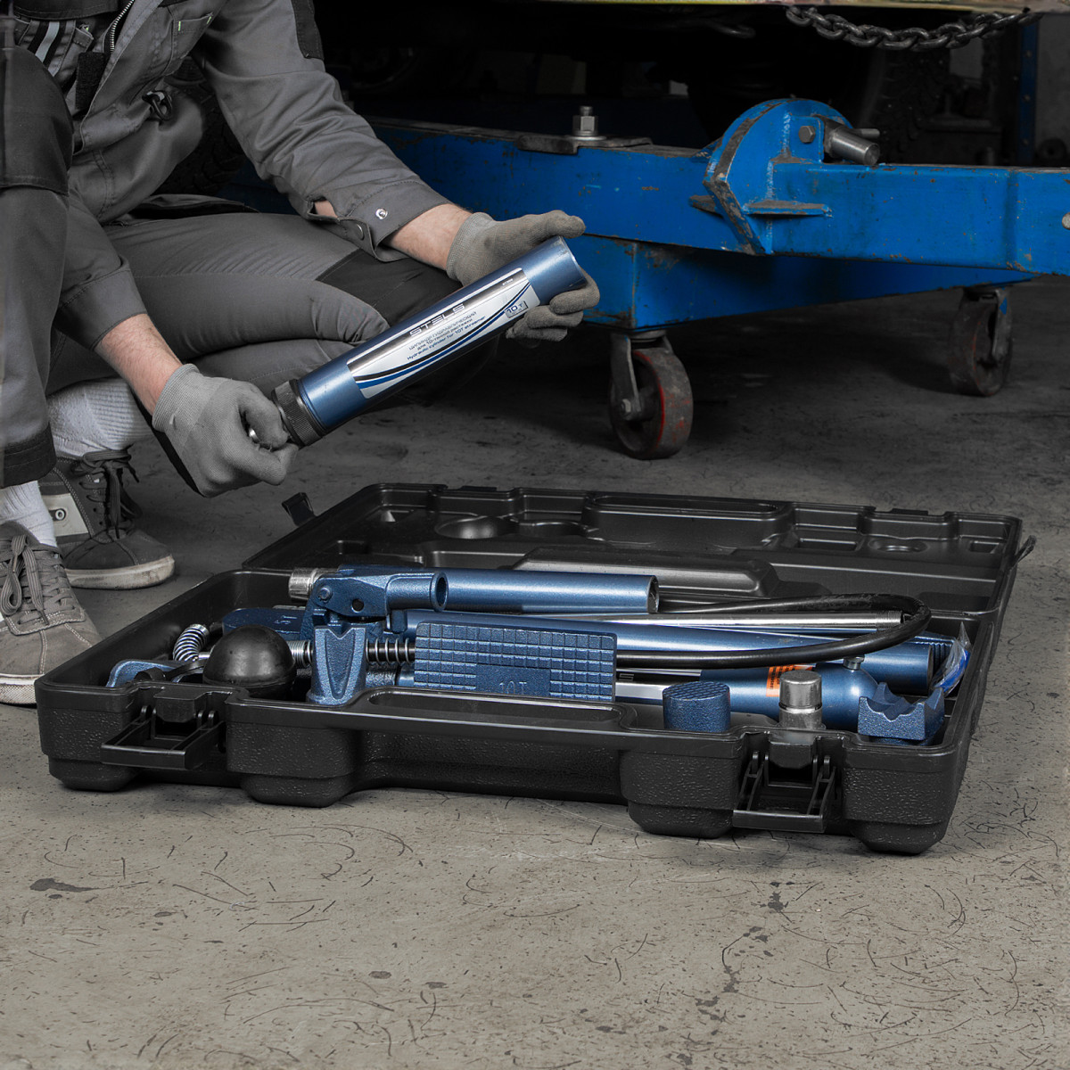 Растяжка гидравлическая, 10 т, набор из 17 предметов, 7 сменных насадок, в пластиковом кейсе Stels