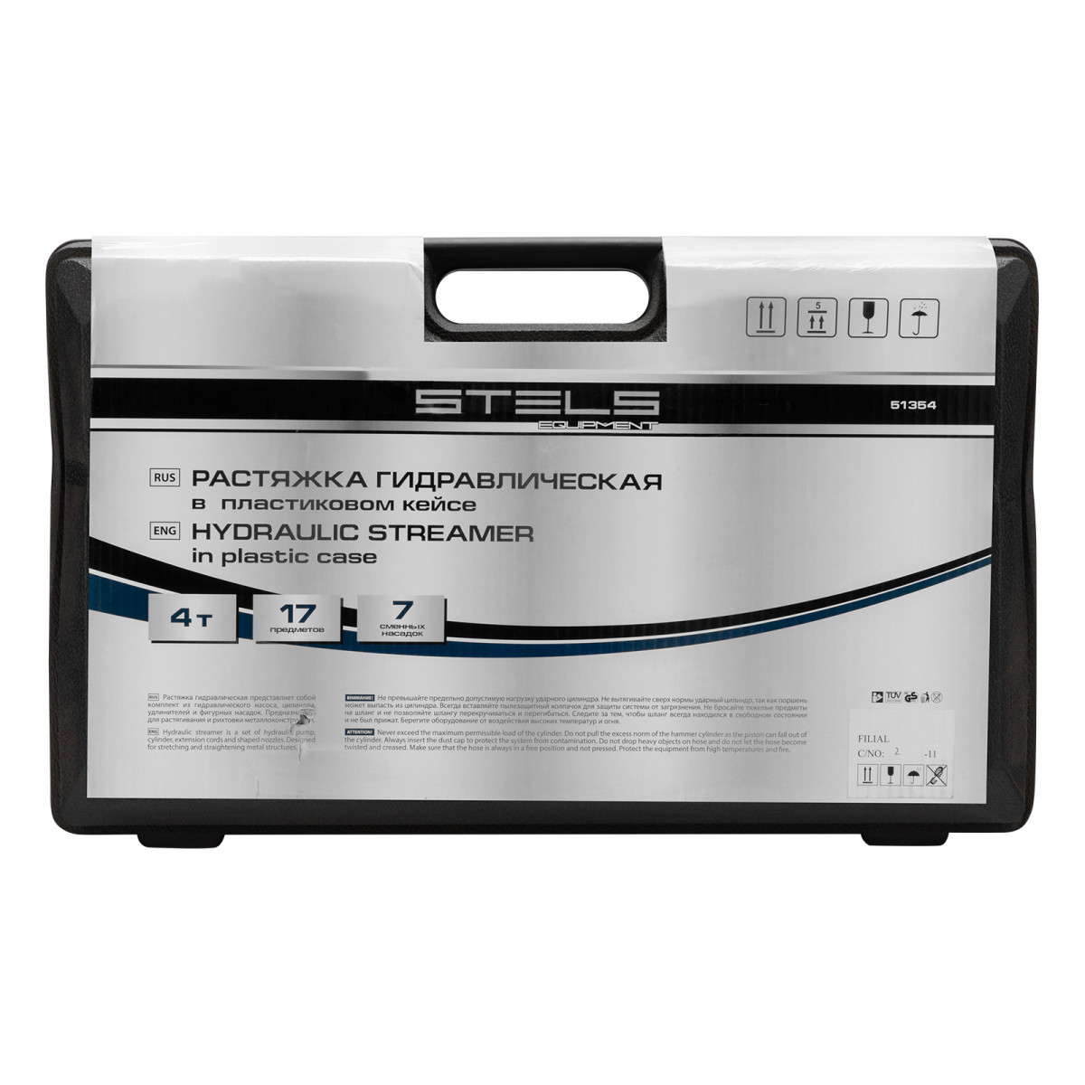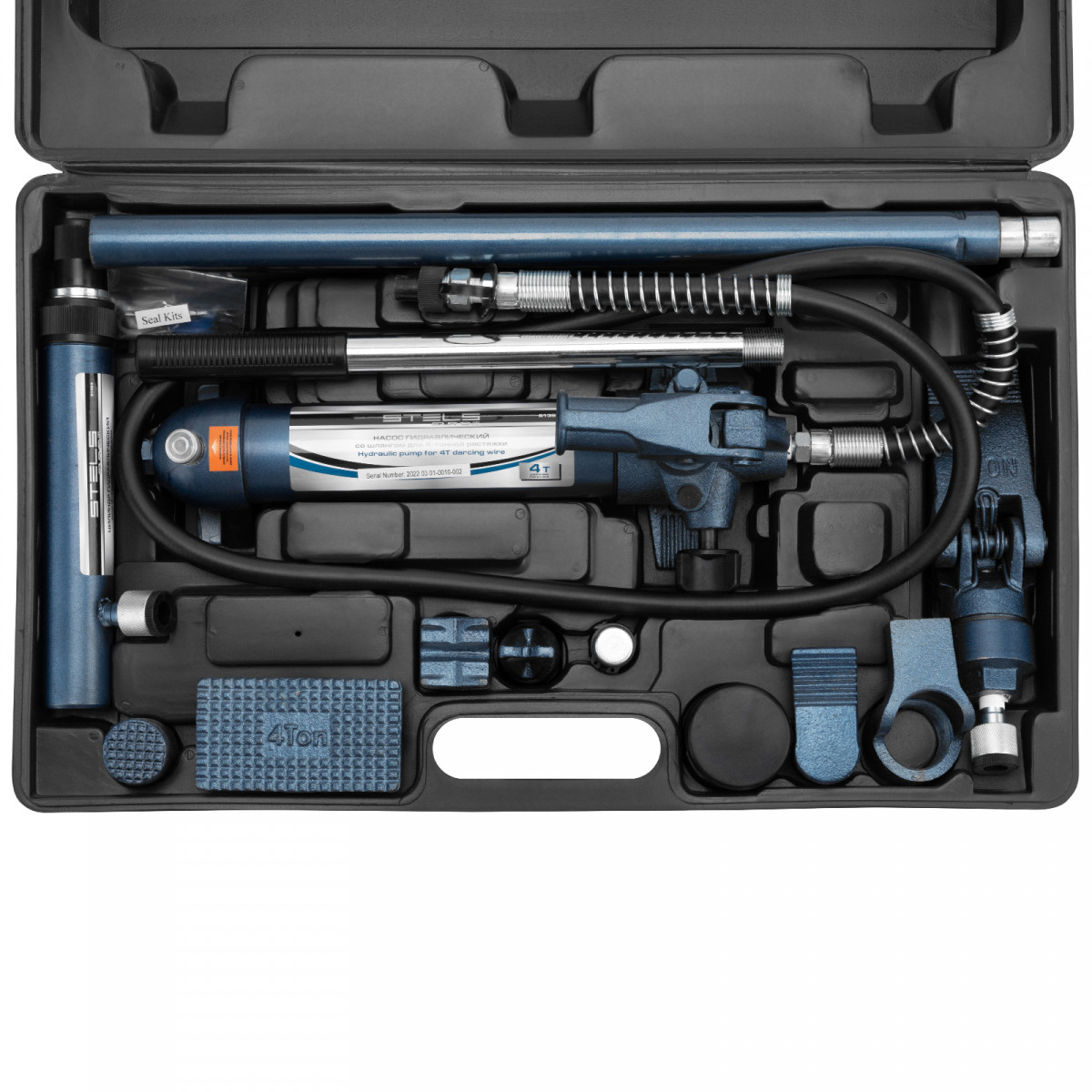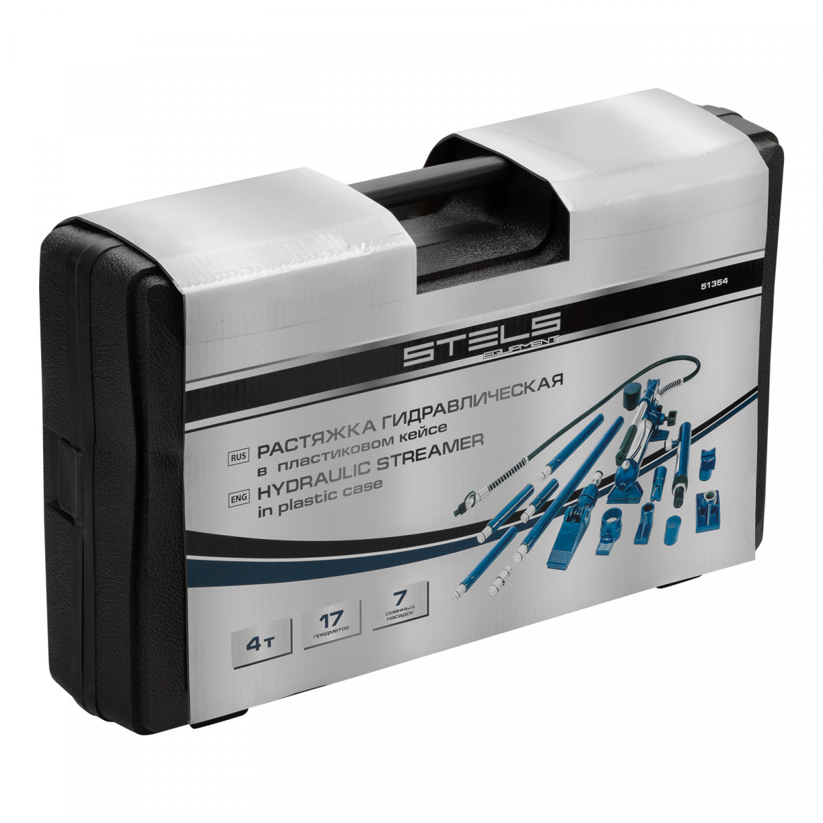 Растяжка гидравлическая, 4 т, набор из 17 предметов, 7 сменных насадок, в пластиковом кейсе Stels