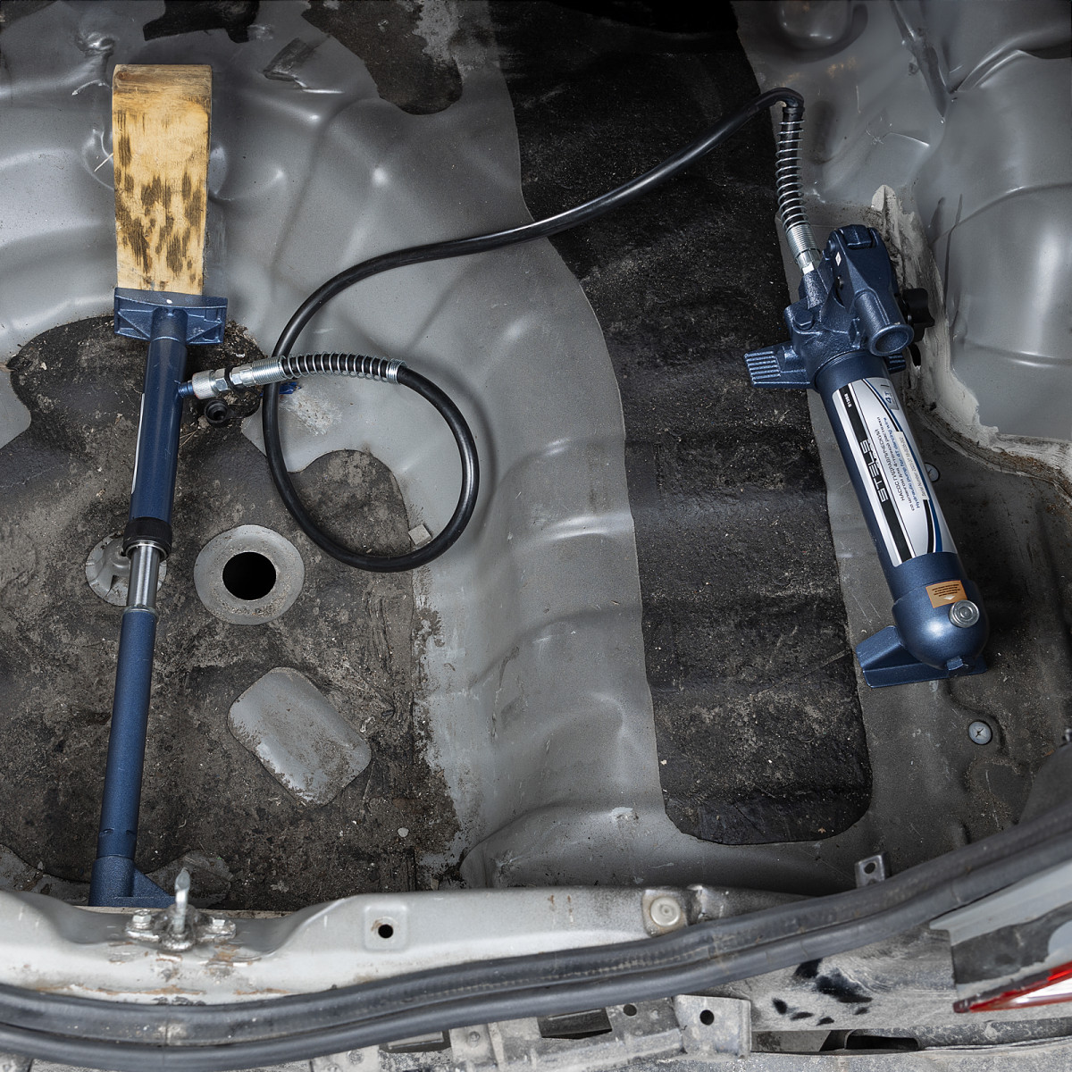 Гидравлическая растяжка Stels 51354, рассчитанная на усилие до 4 т, — компактный набор в пластиковом кейсе, включающий 17 предметов: цилиндр, гидронасос, адаптер, удлинители, основание и 7 сменных насадок. Используется для проведения кузовного ремонта и рихтовки металлических конструкций. Растяжка удобна для восстановления геометрии проемов автомобильных дверей и окон, а также значительных по площади участков кузова. Комплект пригодится в автосервисе, а также для работы в гараже.
